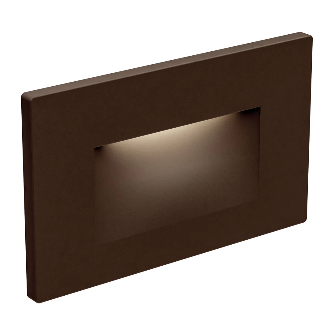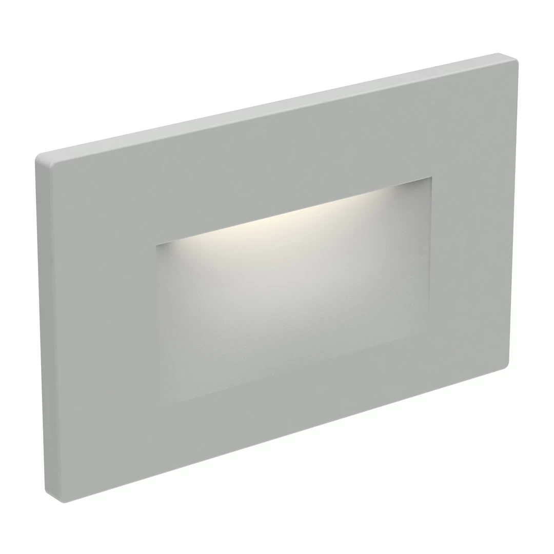 The Horizontal LED Step Light is ideal for decks and stairs in indoor and outdoor applications. Die-cast aluminum housing with faceplate available in White, Black, or Silver Grey finish. Non-visible hardware. 120VAC direct connection. Fits on a standard junction box (3 inch length x 2 inch wide x 2.5 inch depth). Junction box must be mounted horizontally. ETL listed.