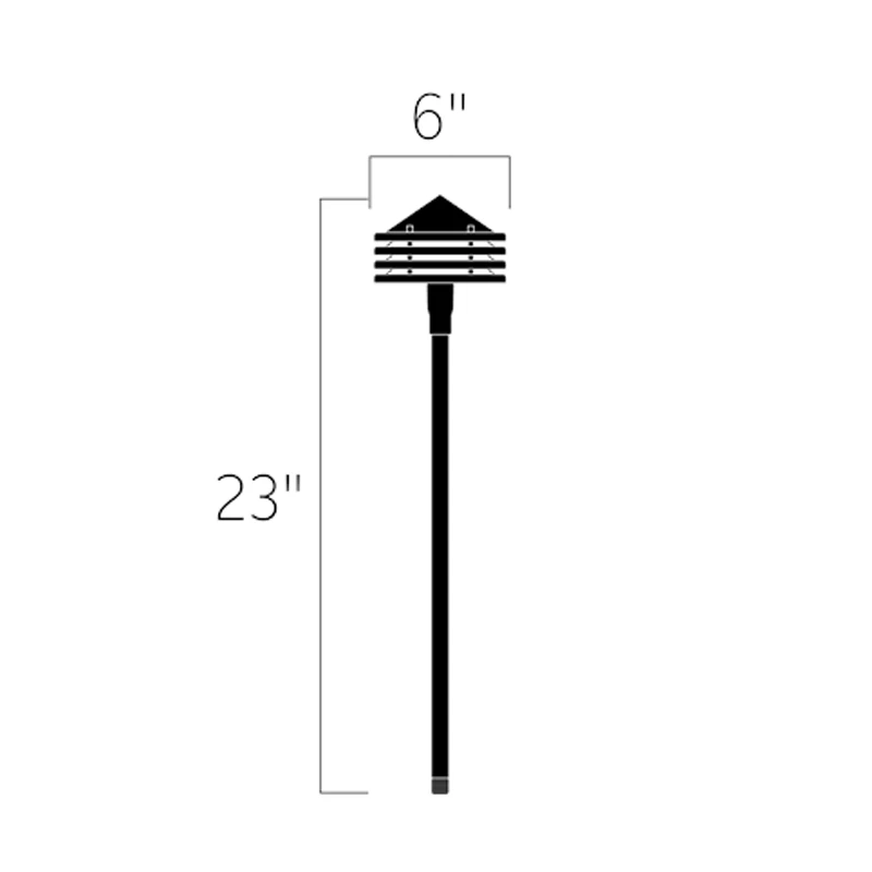The 12 Volt Galaxy Path Light in Textured Architectural Bronze finish. One 12 volt, S8 wedge base bulb up to 2 watts is required, but not included. Includes 8 inch in-ground stake, 24 inch leads, and cable connector. Required transformer sold separately.