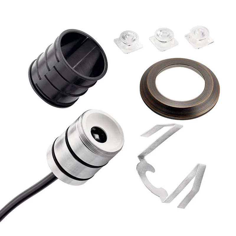 The 12 Volt LED All-Purpose Recessed fixture is a fully sealed and encapsulated fixture featuring an integrated LED module with 100 lumen or 200 lumen output and 2700K or 3000K color temperature. Available in a Centennial Brass or Stainless Steel finish. The three field changeable beam optics are included with each fixture: 20-, 40- (factory installed), and 75-degrees allow you to put light where you want it. A removable spring clip and compression sleeve adapt to a wide variety of applications for seamless installation. ETL listed. Suitable for wet locations. Operating voltage range: 9-15VAC/DC. Voltage: 12V. Required transformer sold separately.