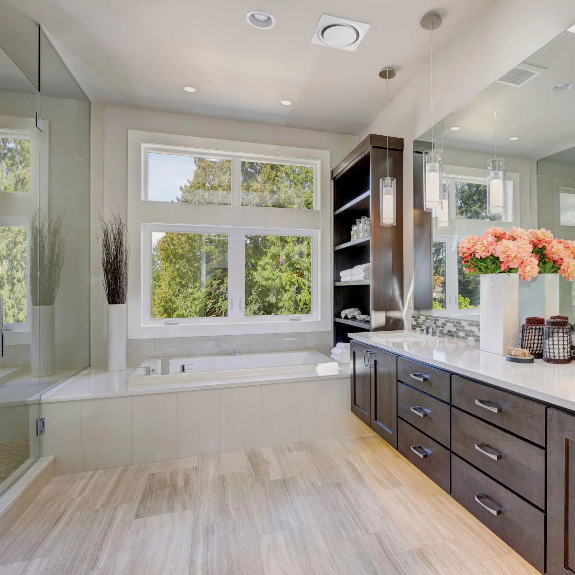 Airflow is achieved through an energy-efficient brushless DC motor. A high flow speed of 50, 80, or 110 CFM and a continuous lower speed can be set using switches in the fixture. The humidity sensor can activate high airflow when humidity rises above a level set by the user (50-100%), and a motion sensor activates the fan when someone enters the room.