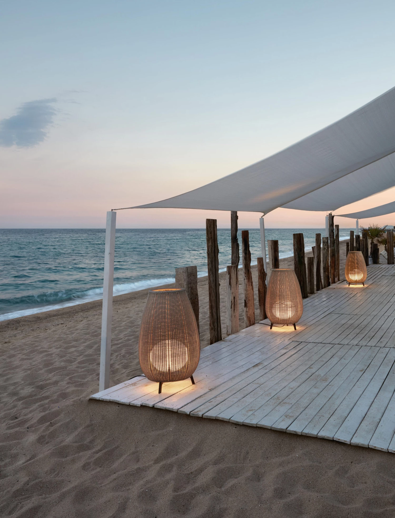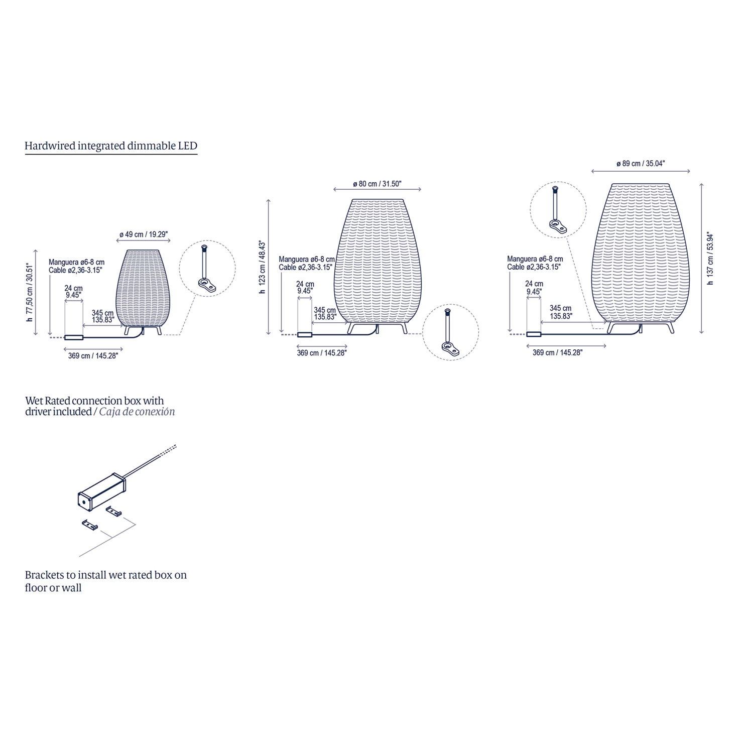 The Amphora Outdoor Hardwired Floor Lamp features a handwoven shade that is a subtle, tasteful tribute to the terracotta amphora vases used in gardens and terraces throughout the Mediterranean. The shade, made of recyclable, non-toxic synthetic polyethylene fiber, is combined with a UV-resistant polyethylene globe diffuser for a waterproof design that makes this the perfect lighting source for outdoor areas. This versatile lamp can be placed indoors or outdoors to provide a warm, ambient glow that highlights any occasion. This lamp is hardwired and includes a wet-rated connection box with driver.