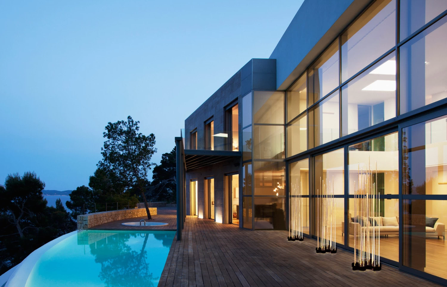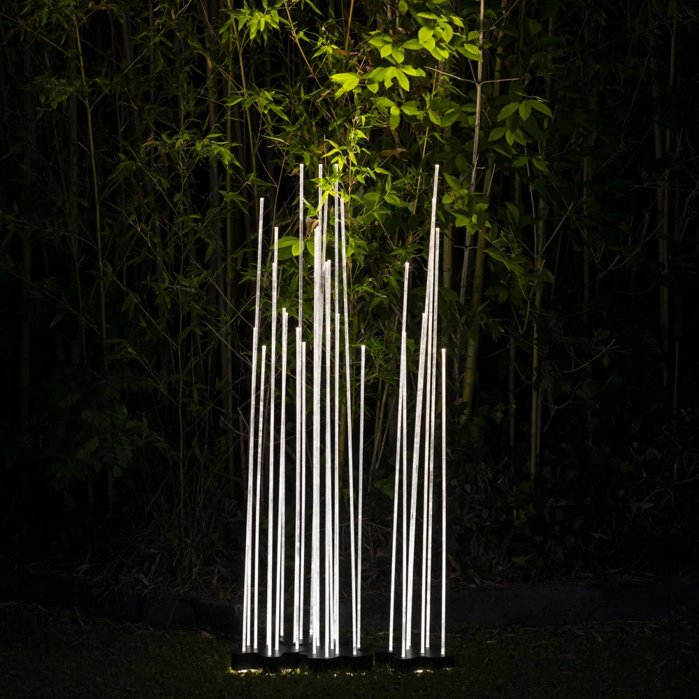 Reeds Outdoor Floor Lamp features high performance monochromatic LED modules. Light is diffused through PMMA rods with differing heights to give the impression of a grove of reeds. The base is constructed with transparent polycarbonate casing installed between 2 stainless steel plates. A silicone gasket ensures the fixture is water-tight. The fixture can be fastened to the floor to prevent tipping during high winds. Technopolymer aesthetic cover with an Anthracite Grey finish. Integrated ballast included. Available in two sizes. UL Listed. IP67 Rated. Suitable for wet locations. May be used indoors or outdoors.