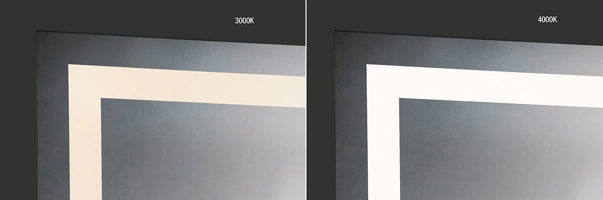 The Aspen Rectangular Color Select LED Mirror is a simple, versatile lighting solution for bathrooms. It offers bright back-lit LED lighting controlled by a touch sensor switch, and color temperature can be adjusted to 3000K or 4000K. The mirror can be hung vertically or horizontally.