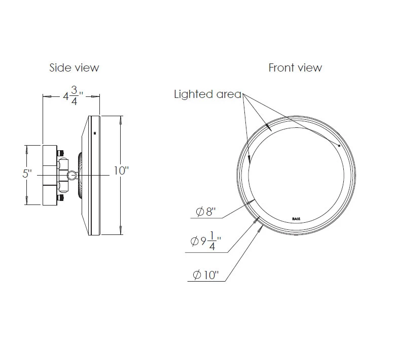 Baci Senior Tilt Swivel Mirror has a solid brass construction and optical quality 5x magnification glass mirror with high power natural white LED lighting. Baci Senior LED Mirrors are available with an optional feature that allows the user to adjust the color of the light output from the soft warm shades of an incandescent lamp to the bright cool white of the noon sky – 2800K to 4800K. Thus you can apply your make-up to look your best in any environment from a candlelit dinner to a snowy ski run. To alter the hue of the light, simply press one of the buttons on the back of the mirror. The top button makes the color warmer and the bottom button makes it cooler. To change the light in small increments, tap the button. If you hold the button down it will change continuously as it cycles through the full extent of the range in the direction selected. When the light reaches the end of its range, press the other button to smoothly transition in the opposite direction. Do not press both buttons at the same time.Finishes in Satin Nickel, Polished Nickel, Bronze, Polished Brass, or Polished Chrome. Damp location rated. UL listed.