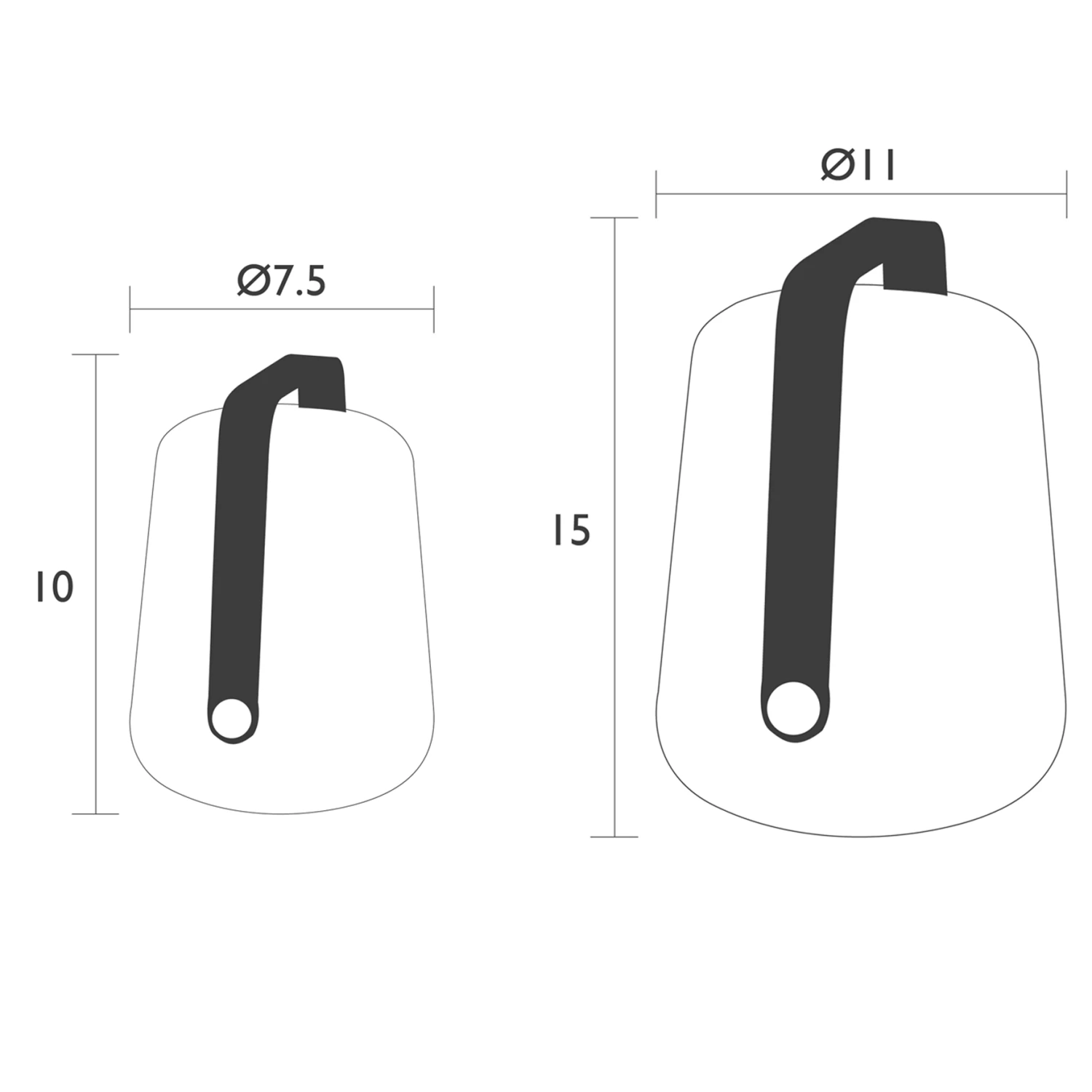 A wireless lantern lamp that is quick and easy to recharge with the included USB-C cable. Features temperatures (warm white 2300K, neutral white 4000K and cool white 6000K). Small has 4 mode light intensities (neutral white 100%, neutral white 50%, cool white 100%, and candle flicker). Large has an additional mode light intensity (cool white 50%). Its autonomy makes it ideal for long evenings (small: 7-14 hours; large: 9-16 hours). Controlled by switch on front. Optional lamp stand sold separately.