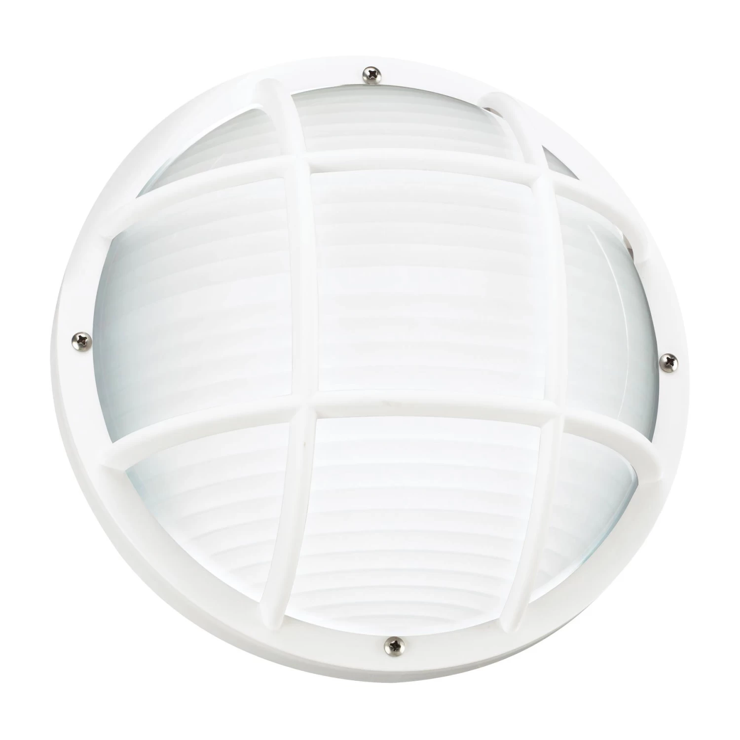 The Bayside Round Caged Outdoor Wall/Ceiling Light is crafted from high quality and durable polycarbonate for long lasting endurance. May be mounted on wall or ceiling. Offered in White or Black polycarbonate with a polycarbonate Frosted ribbed diffuser. Available with incandescent or LED lamp options. LED bulbs are included. Wet location rated. Title 24 compliant. LED option is Energy Star rated.