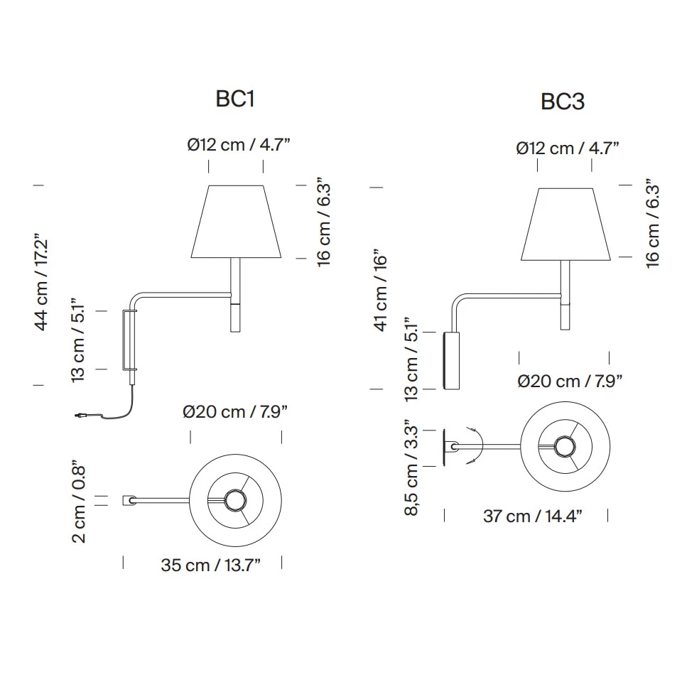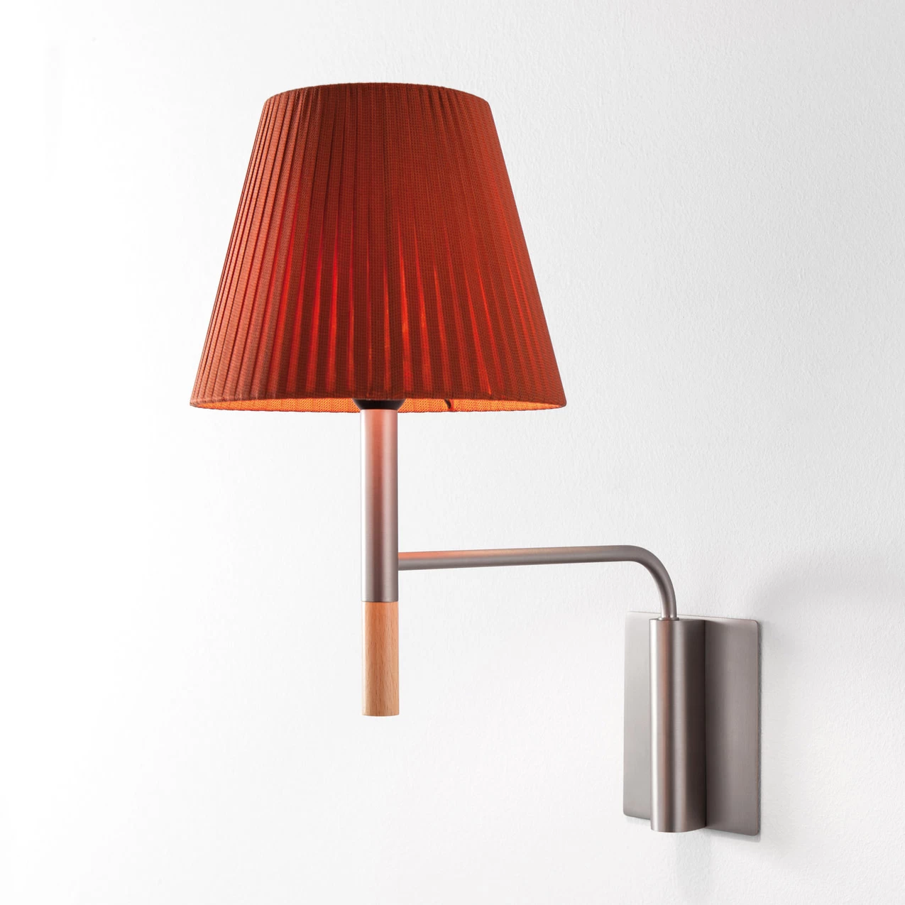 The BC Swing-Arm Wall Light offers a take on a classic silhouette. A pivoting arm and a beech wood handle adjust the shade. Choice of plug-in (BC1) or hardwired (BC3) mounting.