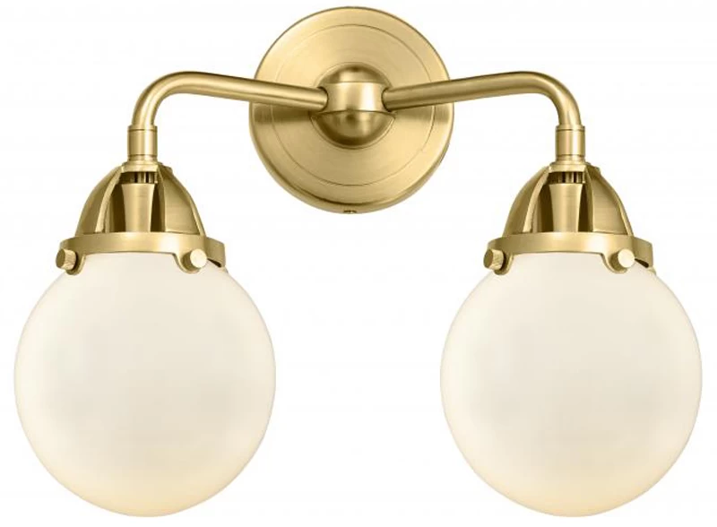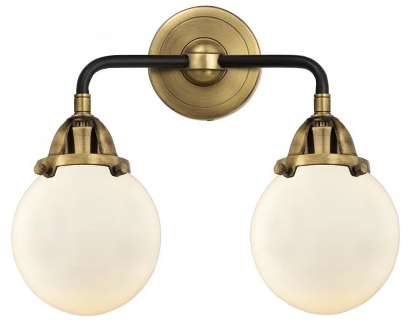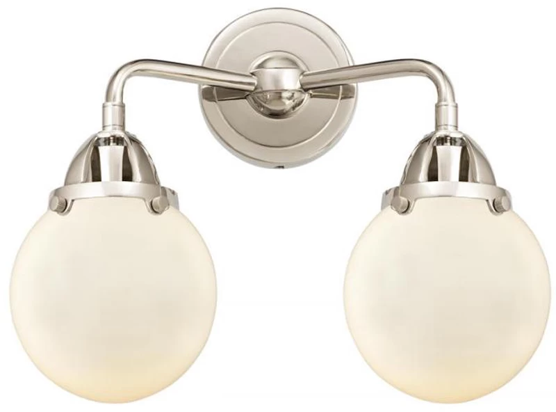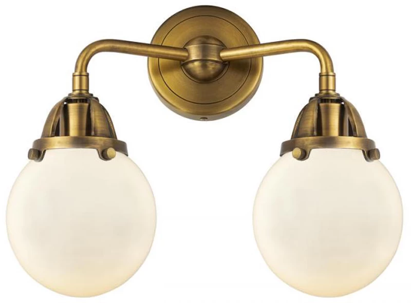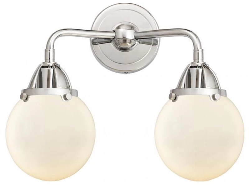 The Beacon 288 Bathroom Vanity Light adds a clean classic look to your interior space. The slender, bent arms are capped by decorative holders, and complemented by smooth glass globes that cast warm shadows across your room.