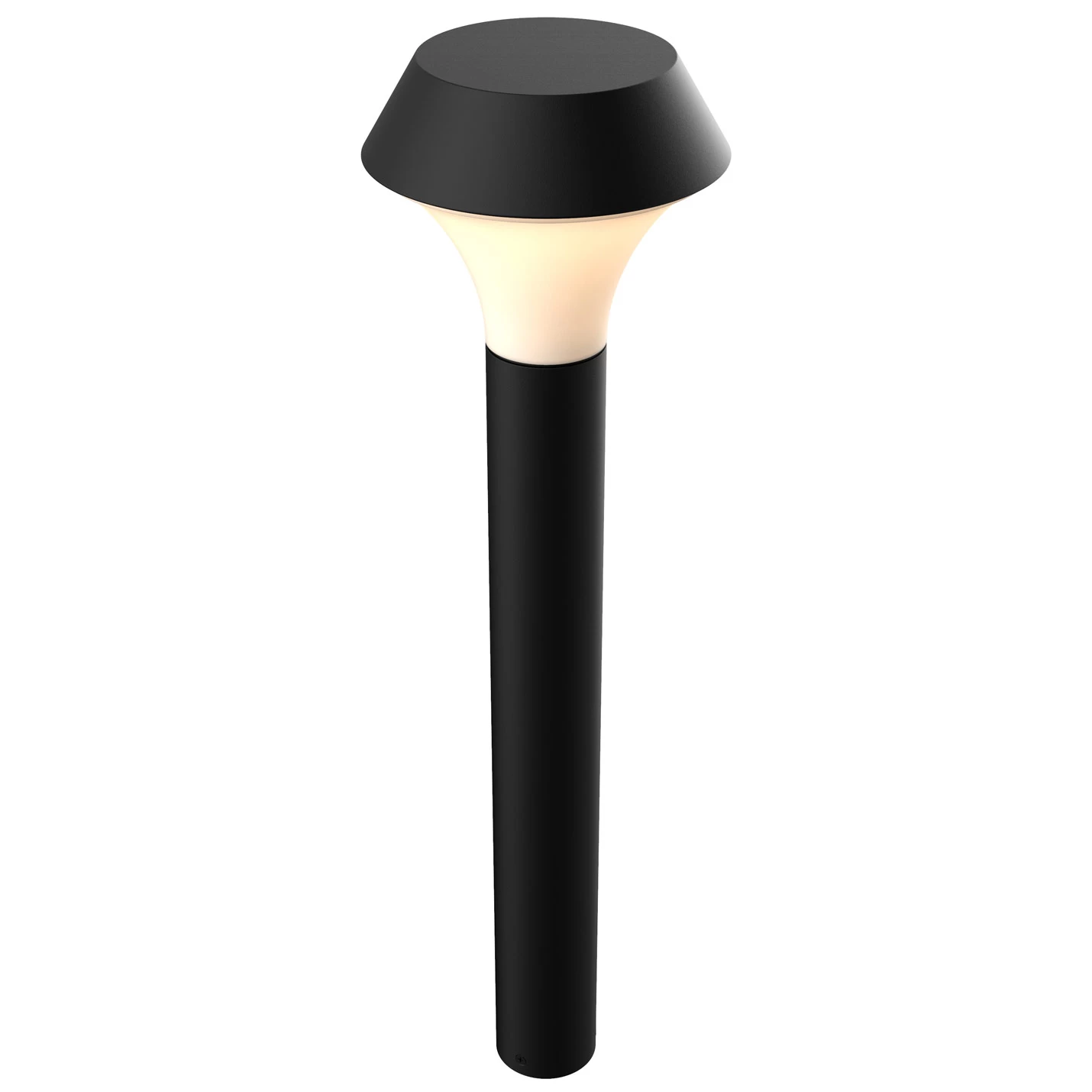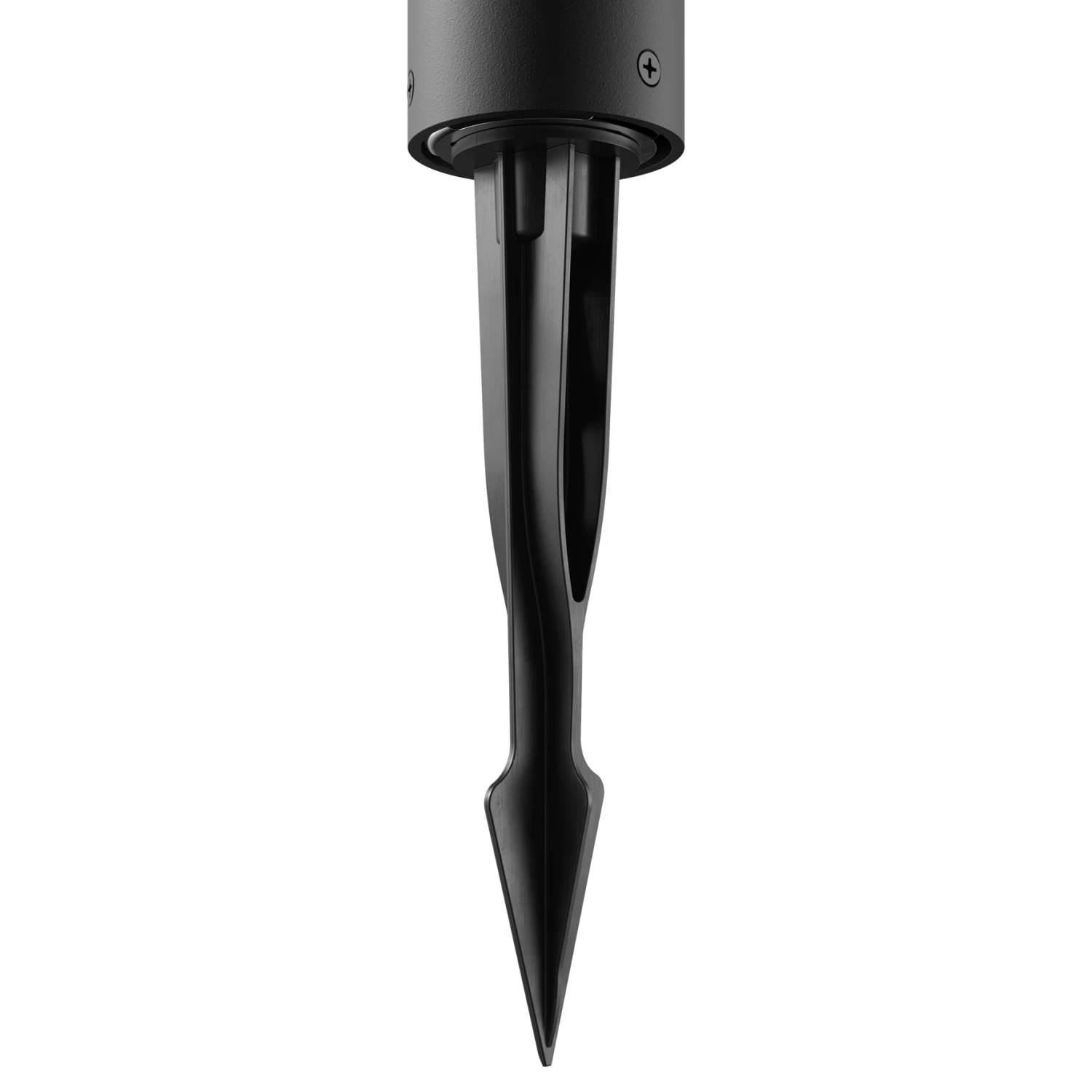 A minimal light that creates a big impact, the Beacon Outdoor Path Light is perfect for illuminating garden beds, walkways, or driveways with a gentle glow emitted through a frosted lens. This low voltage LED fixture is made of black powder-coated solid aluminum, ensuring durability. It can be pushed into the ground using the included plastic ground stake, or mounted to wood or concrete (screws not included). A transformer is required, sold separately.