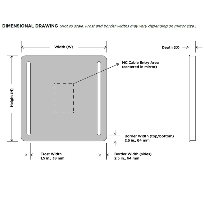 Note: The Bela mirror must be installed in the W x H (width x height) orientation as listed; it cannot be installed in any other direction.