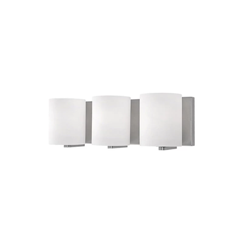 The Bridgewater Bathroom Vanity Light features White Opal cylinder glass shades with Brushed Nickel or Chrome finish. Available with two, three or four lights. UL listed.