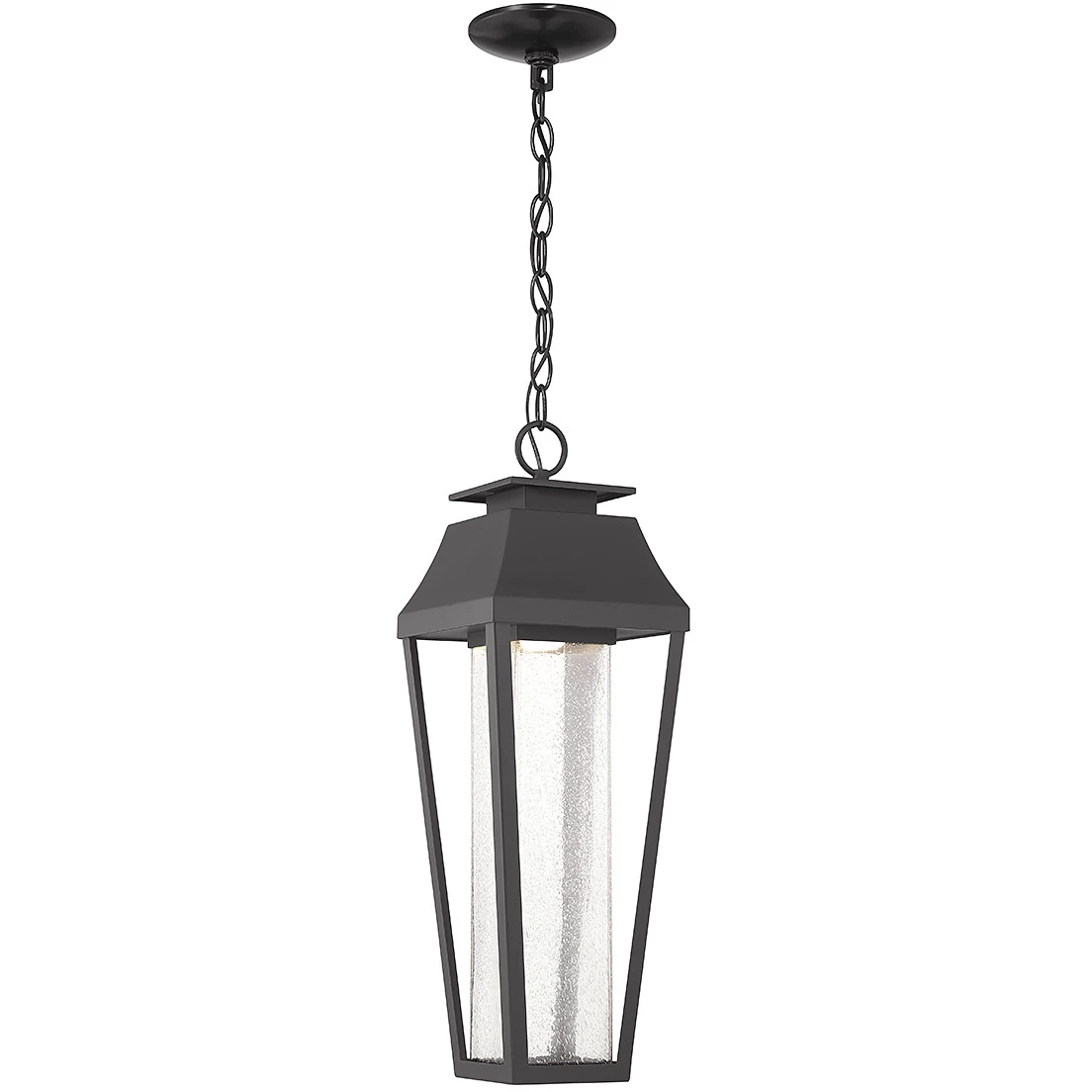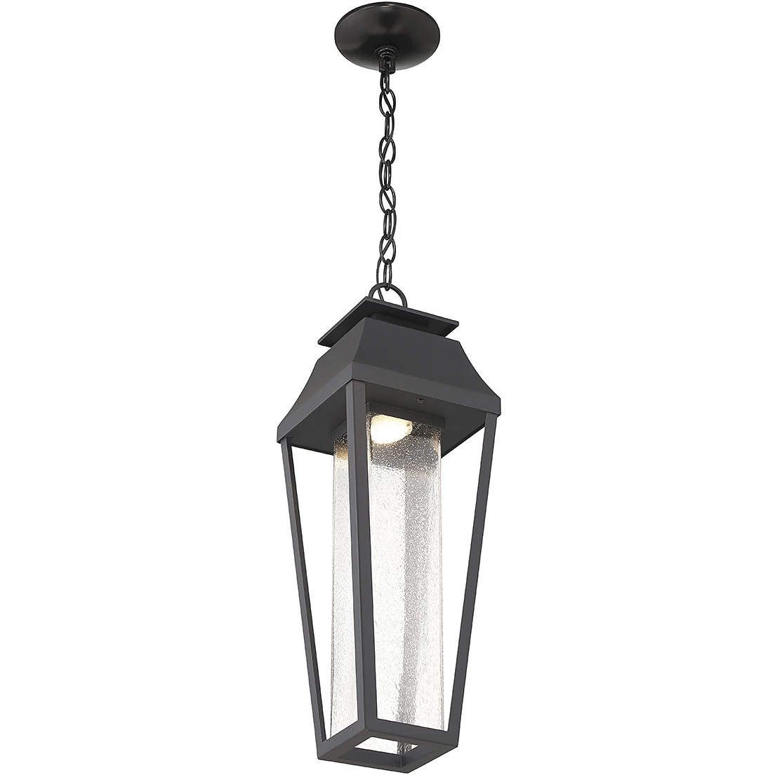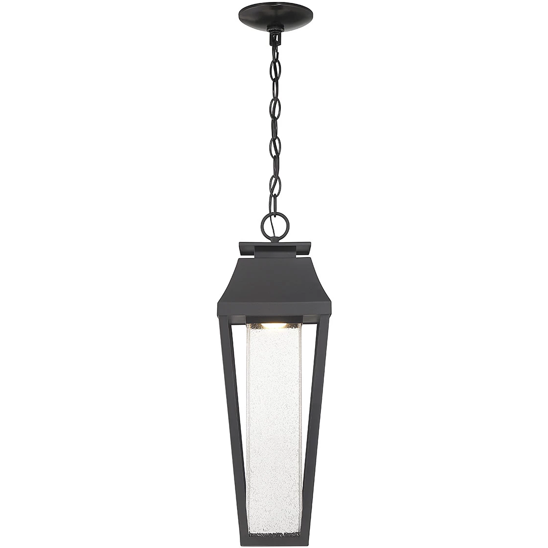 The Brookline Outdoor Pendant is a modern take on the classic lantern, updated with a sleek central column of clear seeded glass and integrated LED light. Place it at front entrances or in other covered outdoor spaces to provide welcoming illumination.