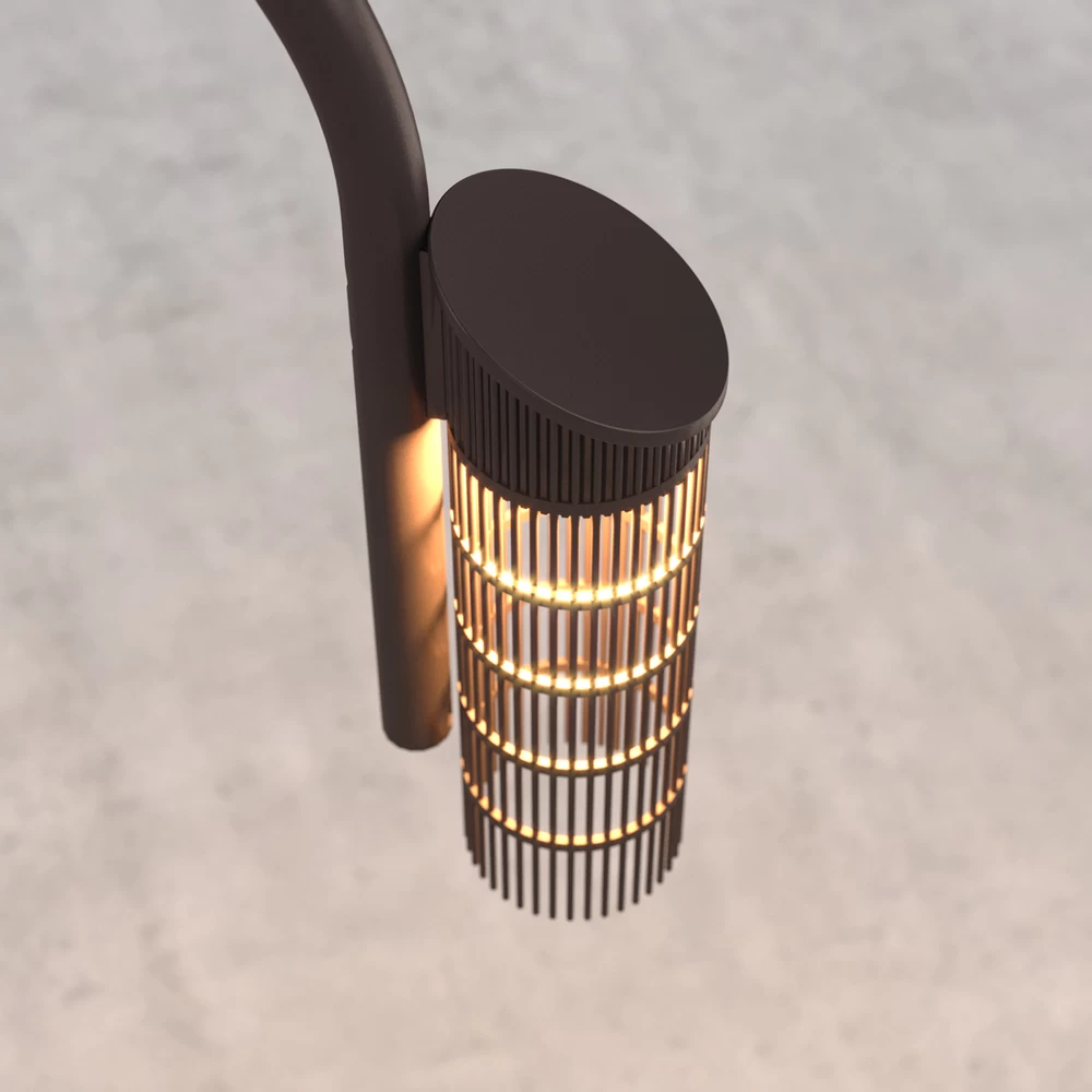 Taking its name from the Latin word for stem, the elegant shape of the Caule Outdoor Bollard is inspired by a flower. The curving stem supports a cylindrical diffuser available in either a solid or nest design that casts intricately patterned shadows. The understated lines of this piece and availability in a variety of heights, finishes and color temperatures make it a versatile addition to a contemporary outdoor space.