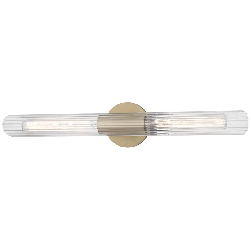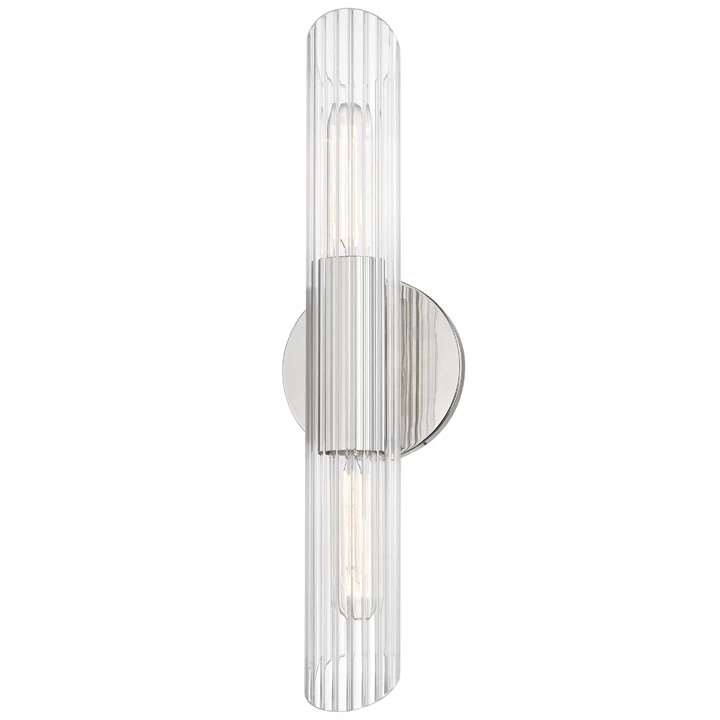 The Cecily Bathroom Vanity Light features Clear ribbed glass shades with an Old Bronze, Aged Brass, or Polished Nickel finish and is available in two sizes. May be mounted vertically or horizontally. UL listed for damp locations. ADA compliant.