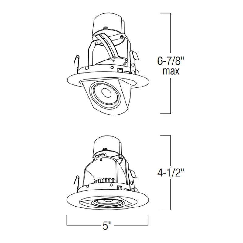 The Cobalt 4, 5 or 6 Inch round retrofit adjustable elbow is designed for use in most existing IC or Non-IC housings by Nora Lighting and others. The adjustable mechanism rotates and adjusts while never exposing an opening the ceiling plane. 358 degree rotation and 75 degree tilt. Field adjustable beam spreads (spot 27 degree included and narrow flood 38 degree pre-installed). Supplied with medium base socket adapter. Frosted lens installed, semi-frosted lens included. Includes a 120 volt integral dimmable LED driver with up to 800 lumen output. Dimmable with an electronic low voltage or TRIAC dimmer, sold separately. Note: Not all options are available.