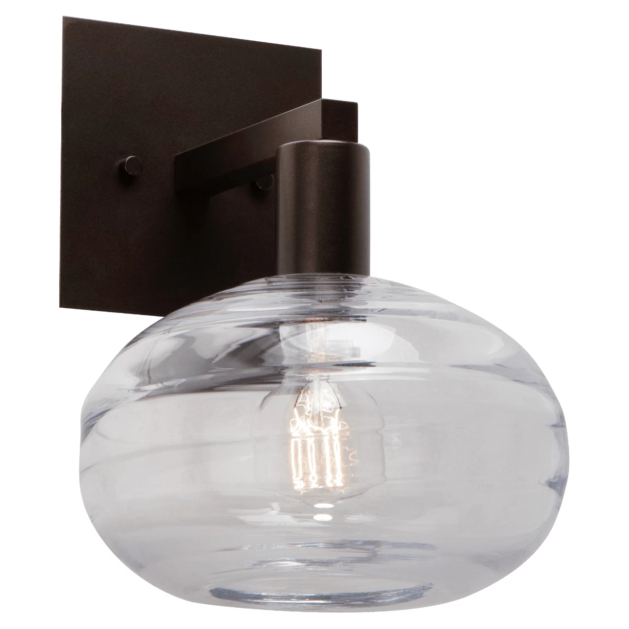 The Coppa Wall Sconce brings a simple yet elegant design to a variety of spaces. Available with Optic Smoke, Optic Clear, Optic Bronze, Optic Amber intriguing blown glass and a Matte Black, Metallic Beige Silver, Flat Bronze, or Gilded Brass finish. Made in the USA. UL listed.