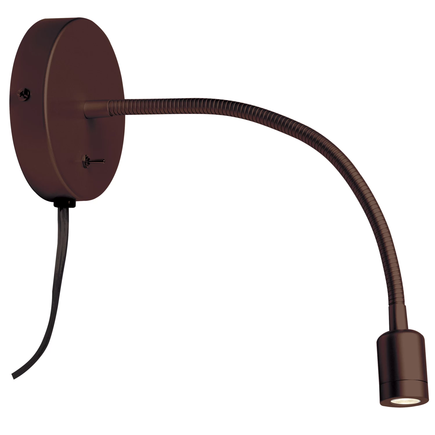 Wynne Wall Sconce features a brilliantly simple concept that works both functionally and fashionably, as it adds a pop of modern edge to the room. The design features an LED light. The circular metal frame is wall-mounted, with an adjustable gooseneck arm curved downward to house an LED light. Toggle on/off switch on canopy. May be installed as a plug-in or hardwired fixture.