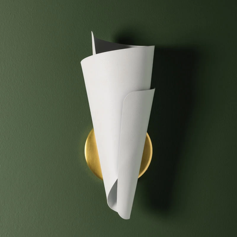 Add a distinctive modern accent to your interior with the Davina Wall Sconce. Davina features a spiraling, conical metal shade which illuminates the wall and allows light to escape through its folds to produce an enchanting glow.