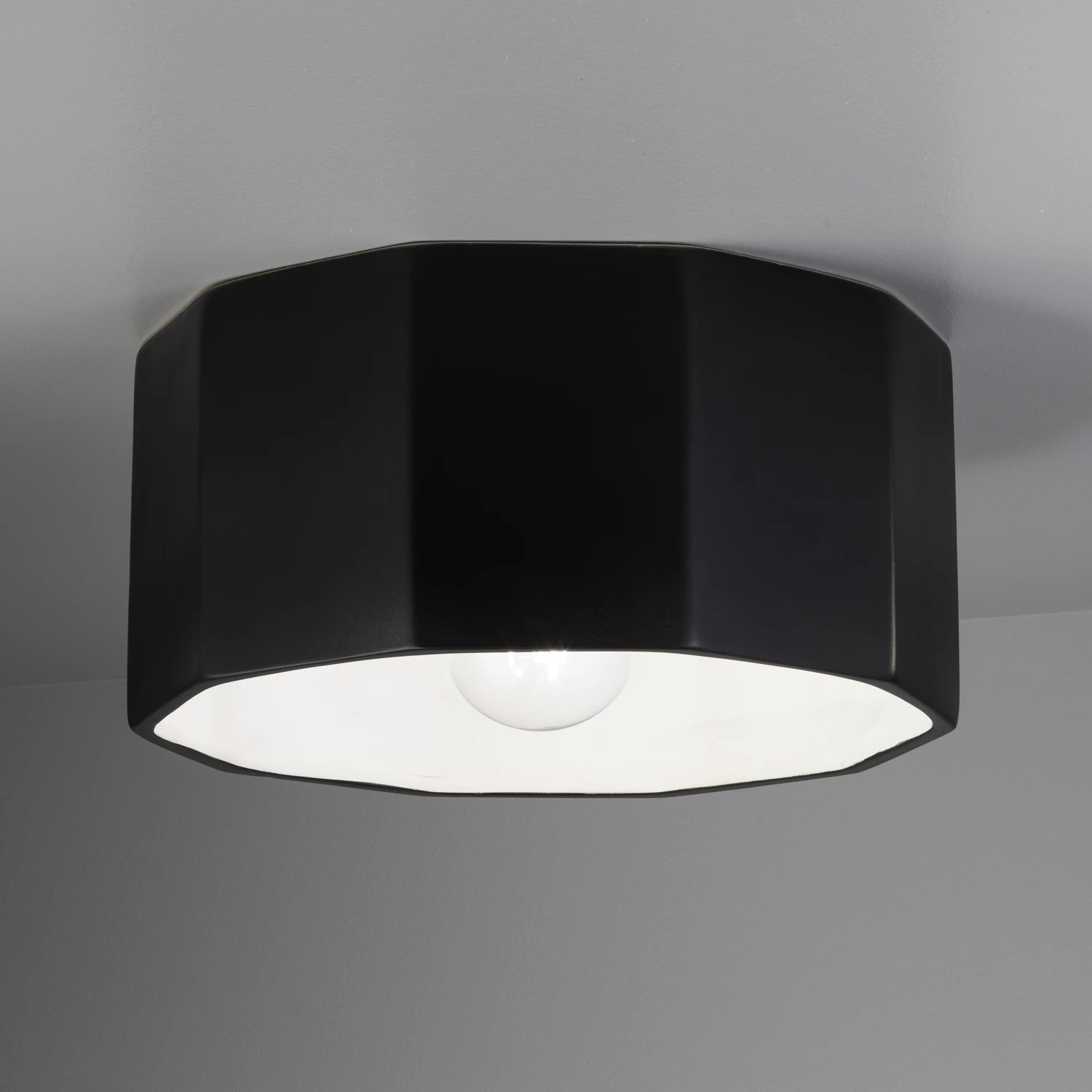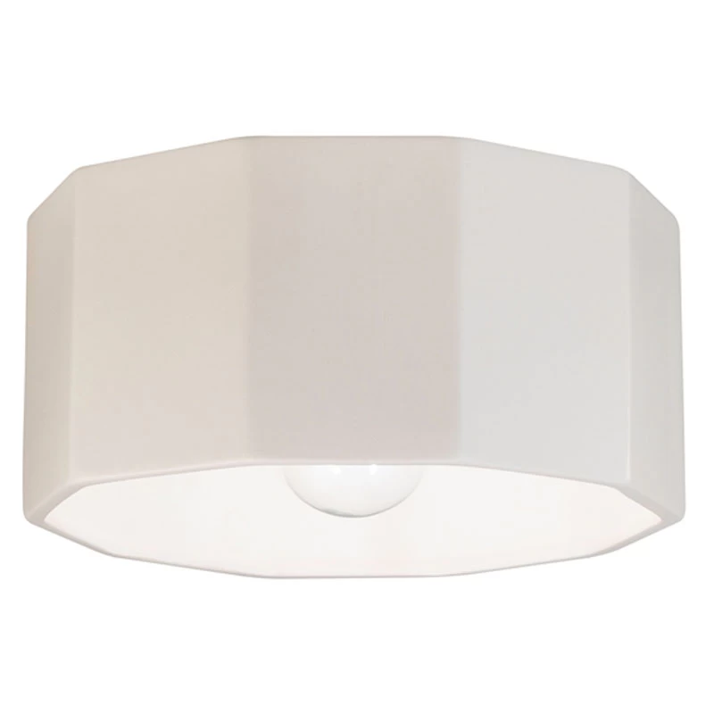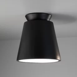 The Deca Outdoor Ceiling Flush Light brings a clean simple look to a variety of interior spaces. The clean edge shaped shade is lined to reflect the light and available in Bisque, Carbon, Matte White, or Tierra Red Slate. Bisque option is in its natural form and can be painted to your desired color. Wet location rated. Made in the USA. UL listed.