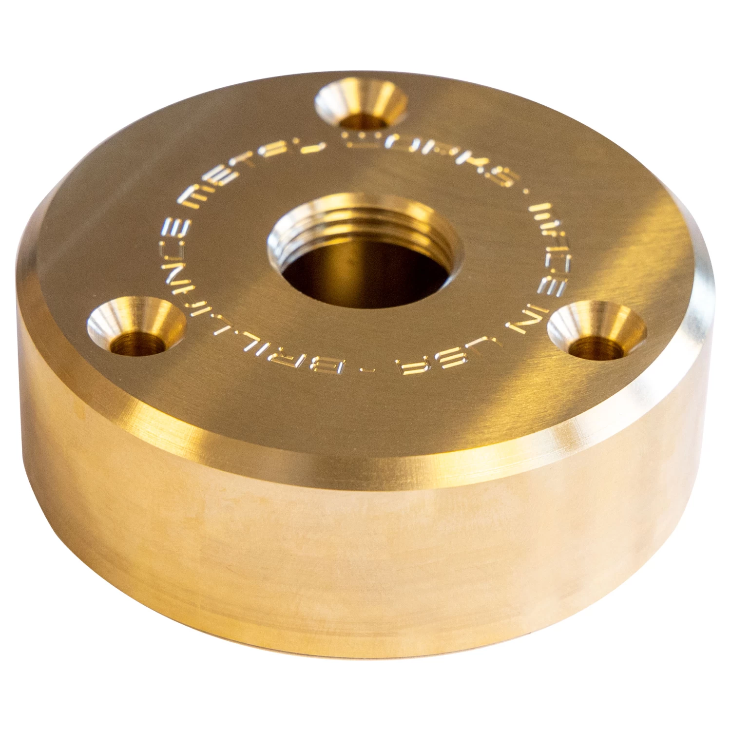 The Brilliance Metal Works deck mount accessory is made from solid round aluminum in Black or brass stock in Black Brass or Brass. It is machined through a CNC computerized process making it a virtually flawless design. Three mounting holes allow the canopy to be installed evenly on any hard-flat surface. A cable relief slot is located on the bottom side of the mount. Designed with a 1/2 inch NPT female thread and accepts all Brilliance Metal Works stem and knuckled fixtures.