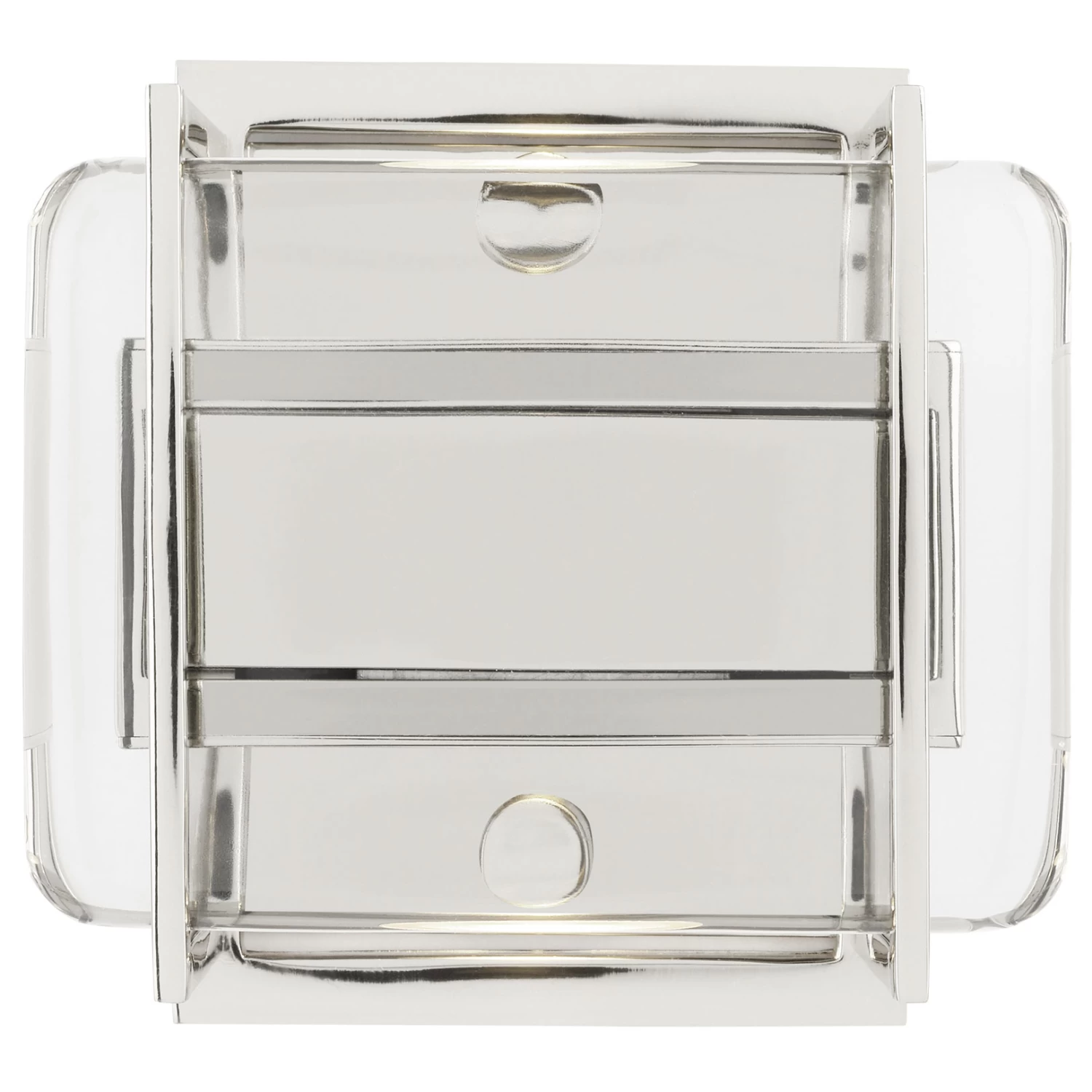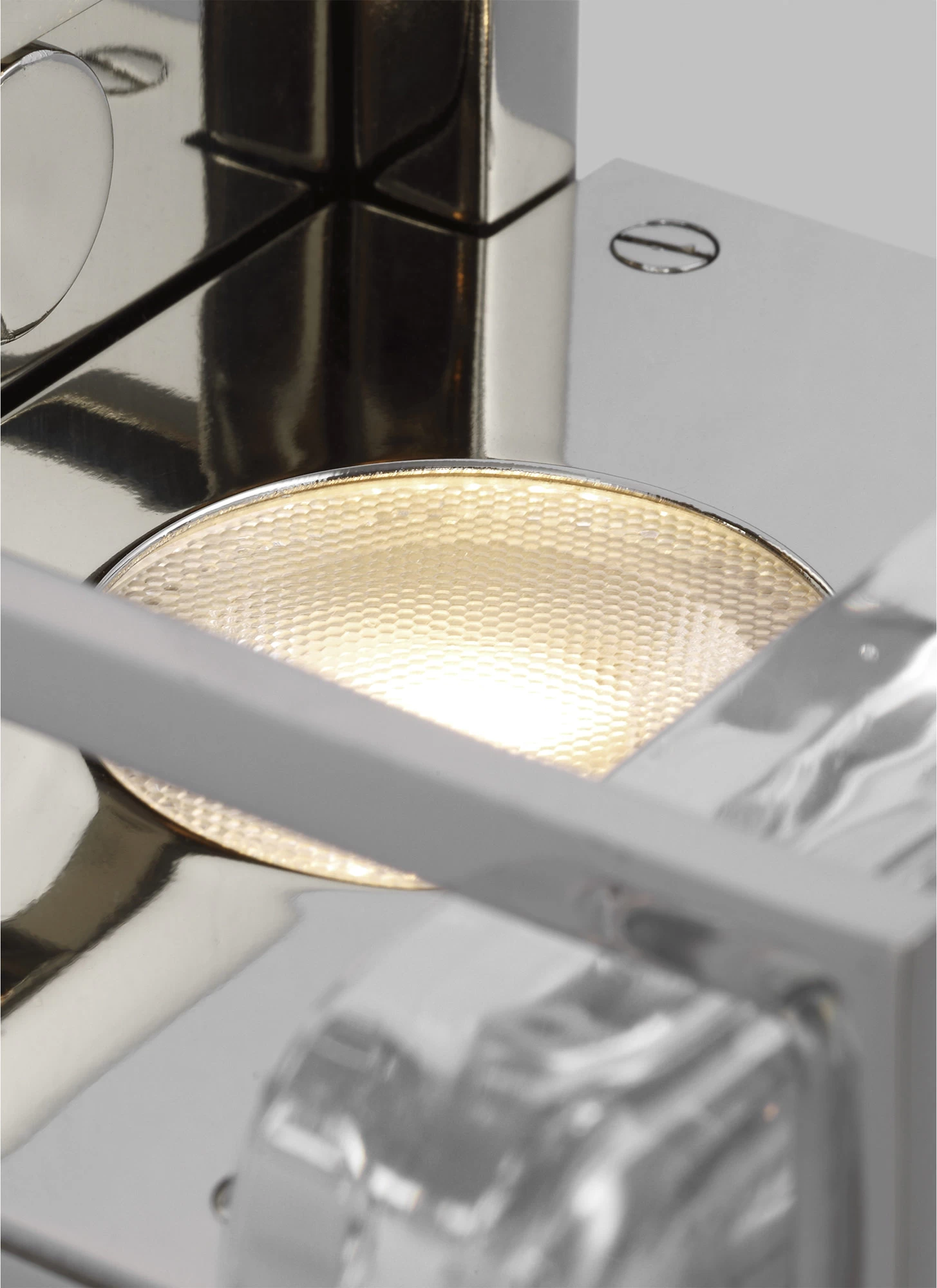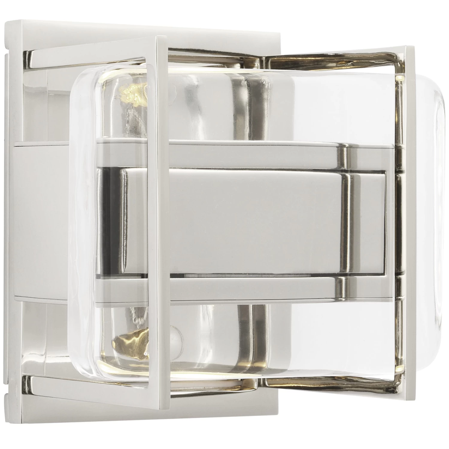 The Duelle Small Wall Sconce exhibits sleek beauty and transparency through its simple structural design. LED light shines up and down, highlighting the watery texture of a thick pressed art glass panel and providing ambient lighting for your space. Dimmable using a TRIAC or ELV dimmer.