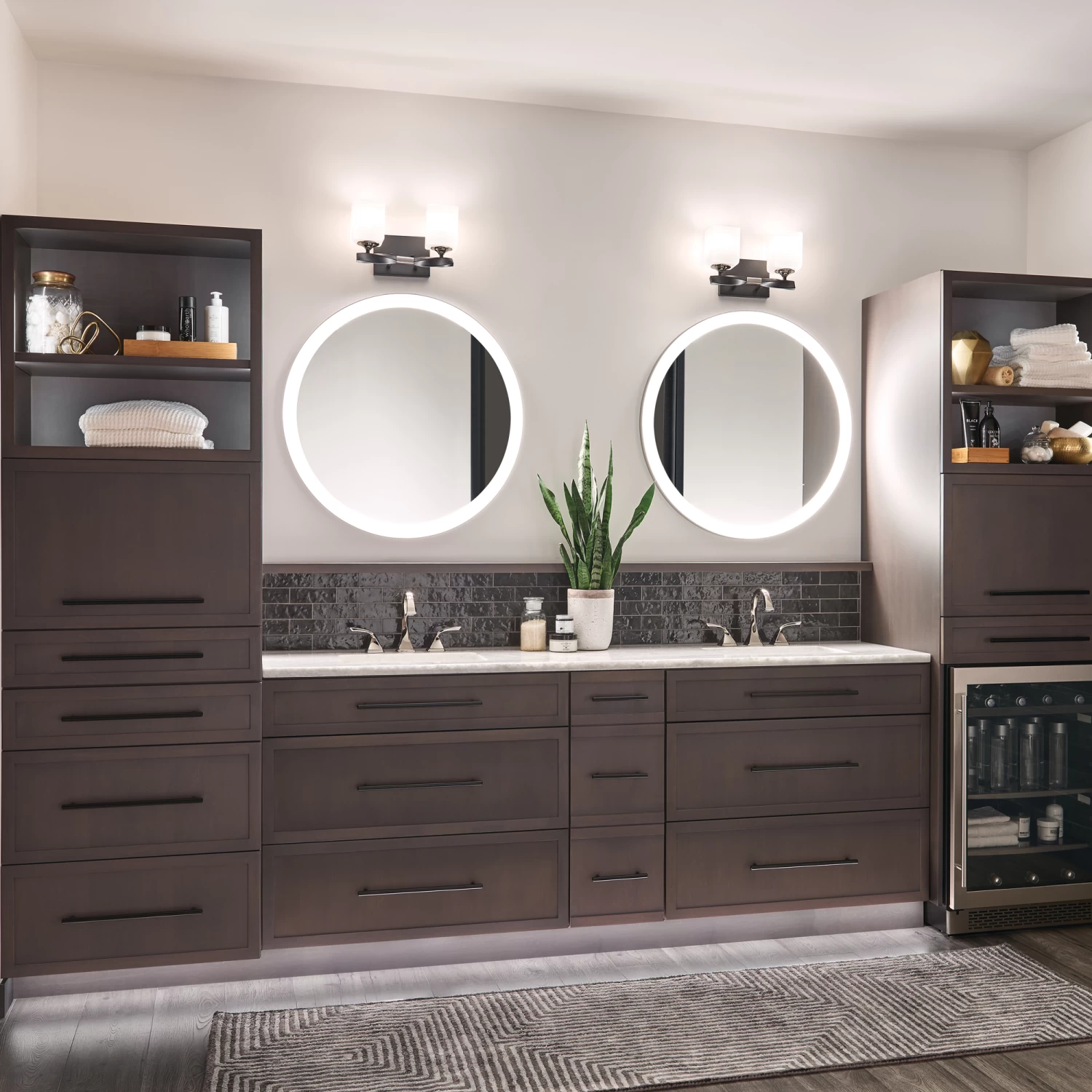 The Ryame Round Lighted Mirror provides a soft halo of light glowing around the perimeter of the mirror finished in Matte Black or Matte Silver with Frosted diffusers. Dimmable with ELV dimmer. Recommended: Legrand Adorne SofTap dimmer ADTP703TUW4 or Leviton Decora SureSlide dimmer 6615-POW, sold separately. ETL listed.