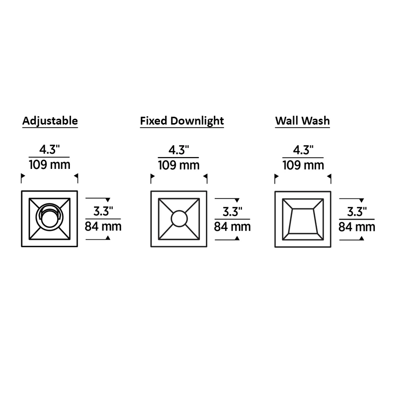 Made of die cast aluminum, the trim has no seams and does not warp or sag. The White trim finish is field-paintable for matching your ceiling. The adjustable option is damp-rated, and the fixed downlight and wall wash options are wet-rated.