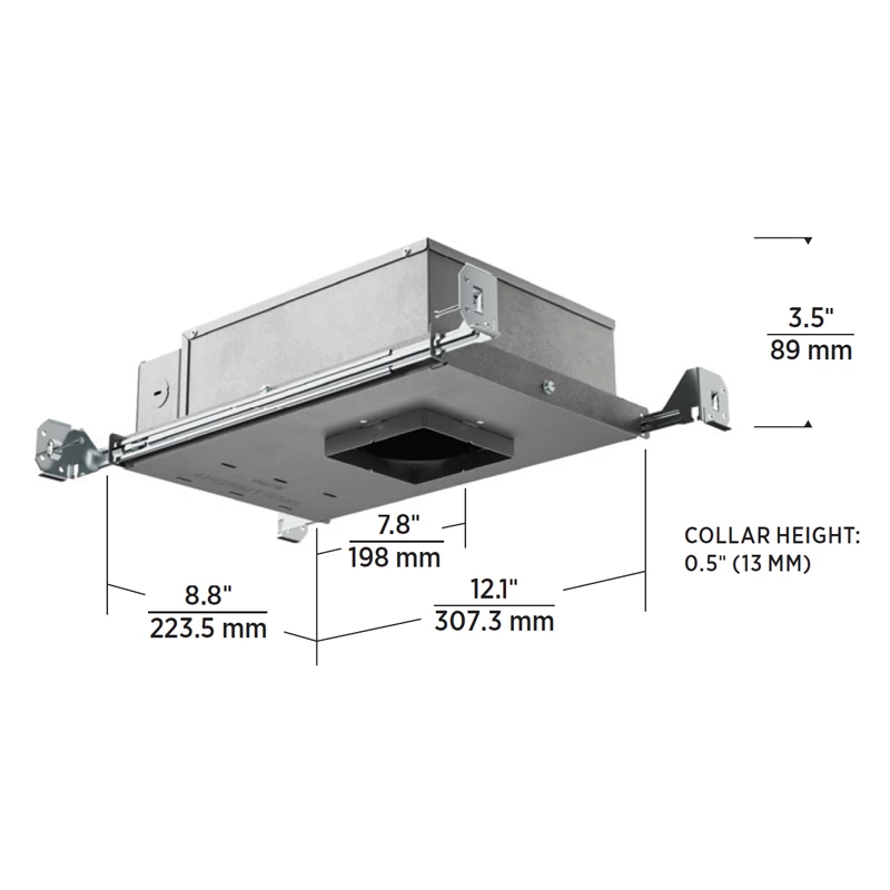 This Entra CL new construction housing is designed for use with an Entra CL 3 inch square flangeless trim. The housing includes a Universal 120-277V driver, dimmable by standard reverse-phase, forward-phase, TRIAC, or 0-10V dimming (down to 5%). 277V is only compatible with 0-10V dimming.