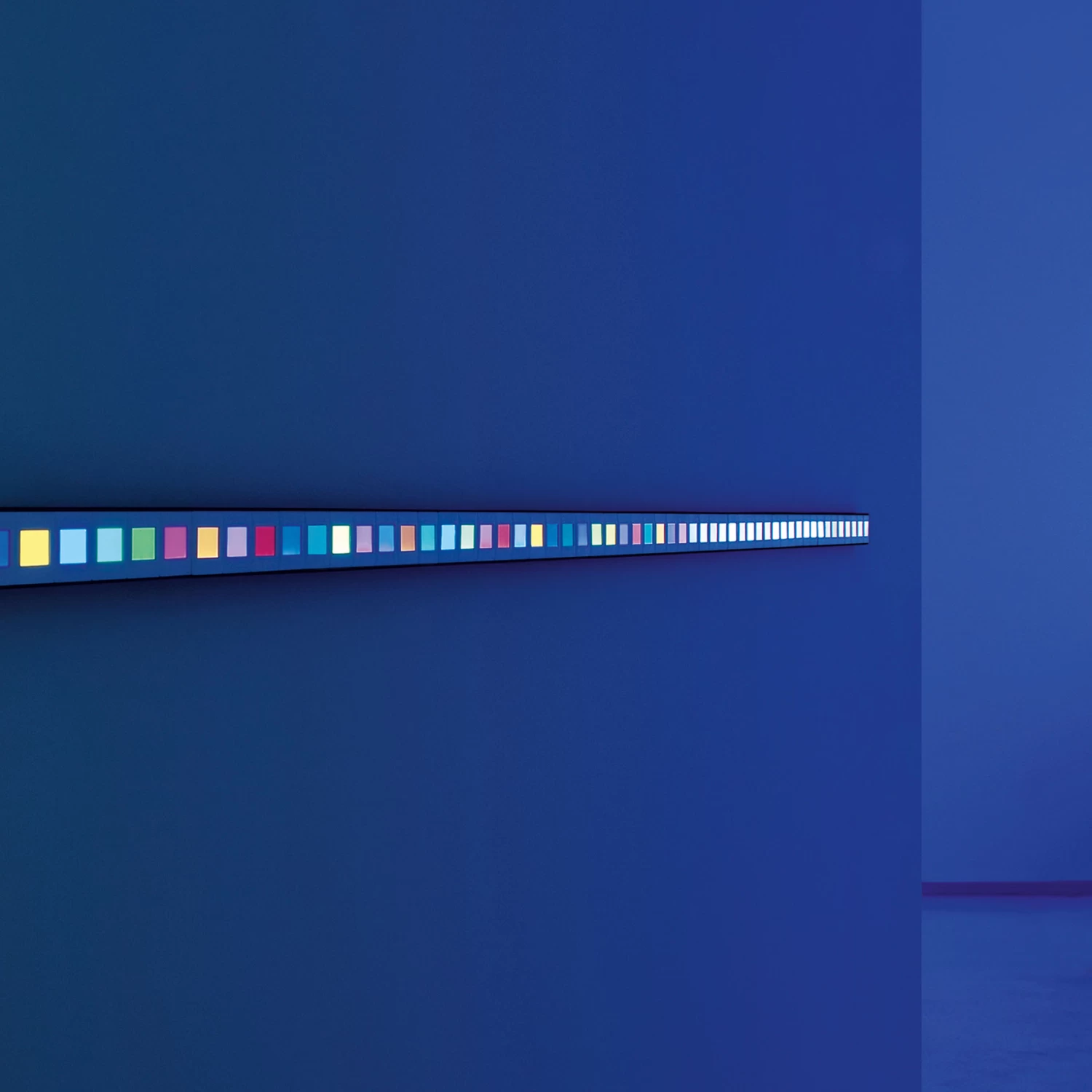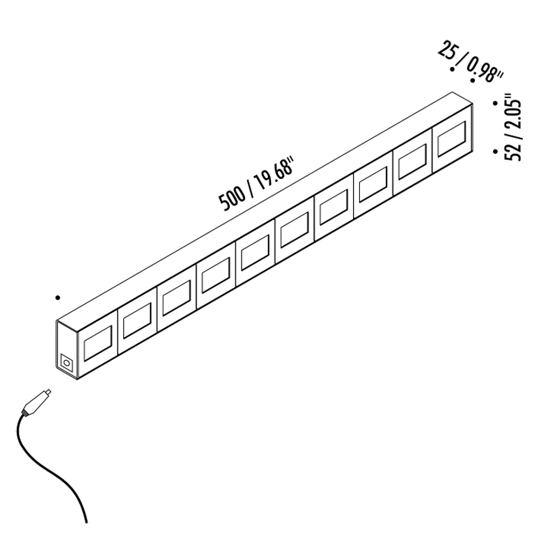 Tell a story through lighting with the Film Wall Sconce. The sconce is composed of a row of 10 windows sized to house 35mm film slides. An integrated LED within the sconce pulses randomly to illuminate individual slides and draw attention to the images. Up to 5 sconces may be joined together to create a striking visual display.