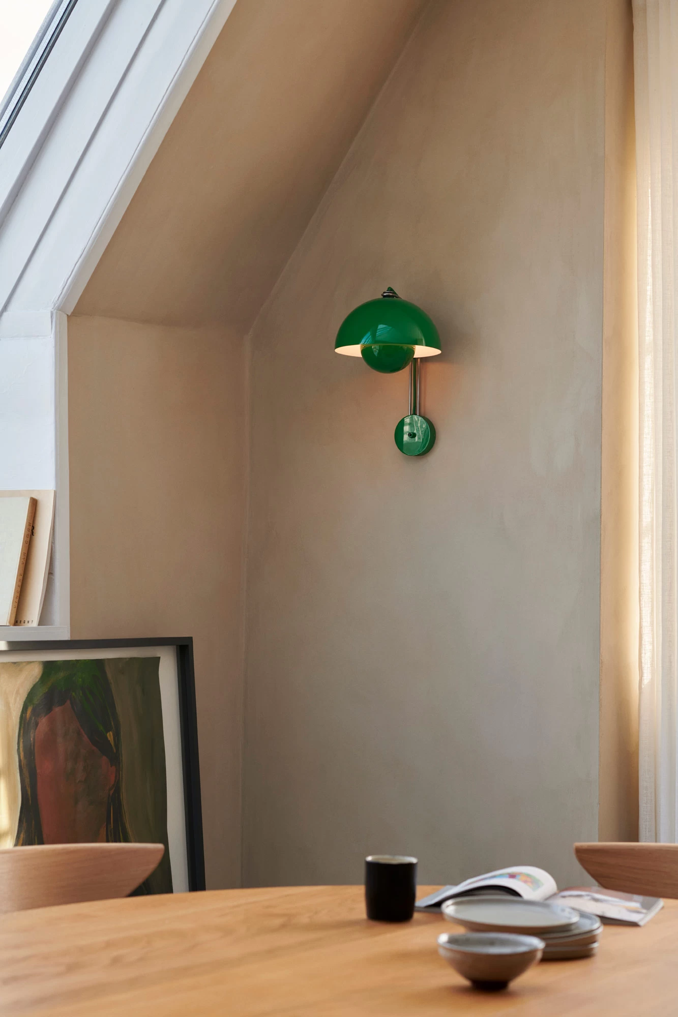 The Flowerpot VP8 Plug-In Wall Sconce celebrates vintage style while expressing modern simplicity. Hemispheres crafted out of deep drawn metal are arranged into the stylish rounded profile. Use a pair as bedside lamps or place them in the living room to create a chic, inviting atmosphere.