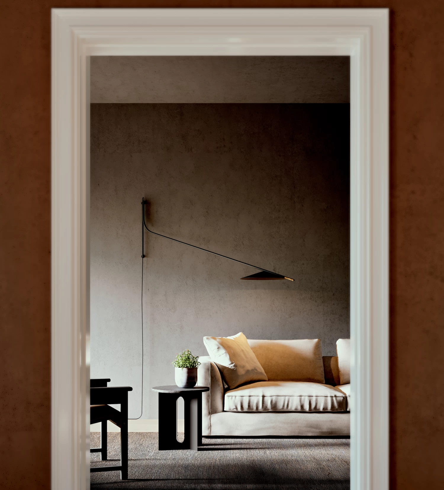The Glifo Wall Plug in Wall Sconce brings a clean look to your interior space. This piece defines its space with a vertical element and clean low lampshade. Available with an On/Off Switch or Touch Dimmer.