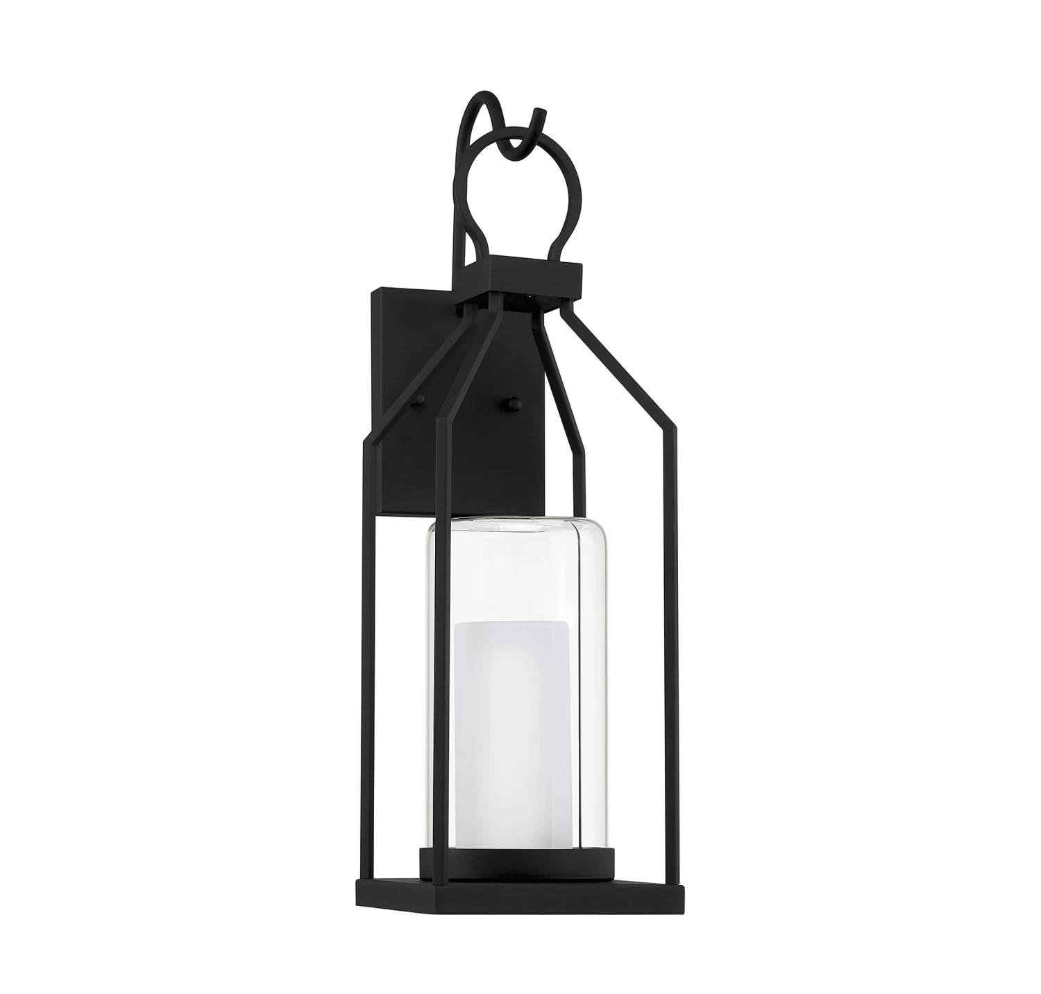 The Hamilton Outdoor Wall Sconce adds a clean look to your exterior space. The lantern inspired style boasts a dual glass diffuser. Available in two sizes.