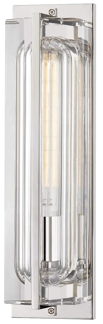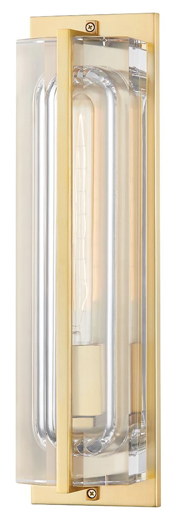 The Hawkins Wall Sconce brings sophistication to any interior space. Thick Clear crystal is scooped out and faceted to create warm shadows across your space. Finished in Black Brass, Aged Brass or Polished Nickel. ADA compliant. Damp location rated. UL and cUL listed.