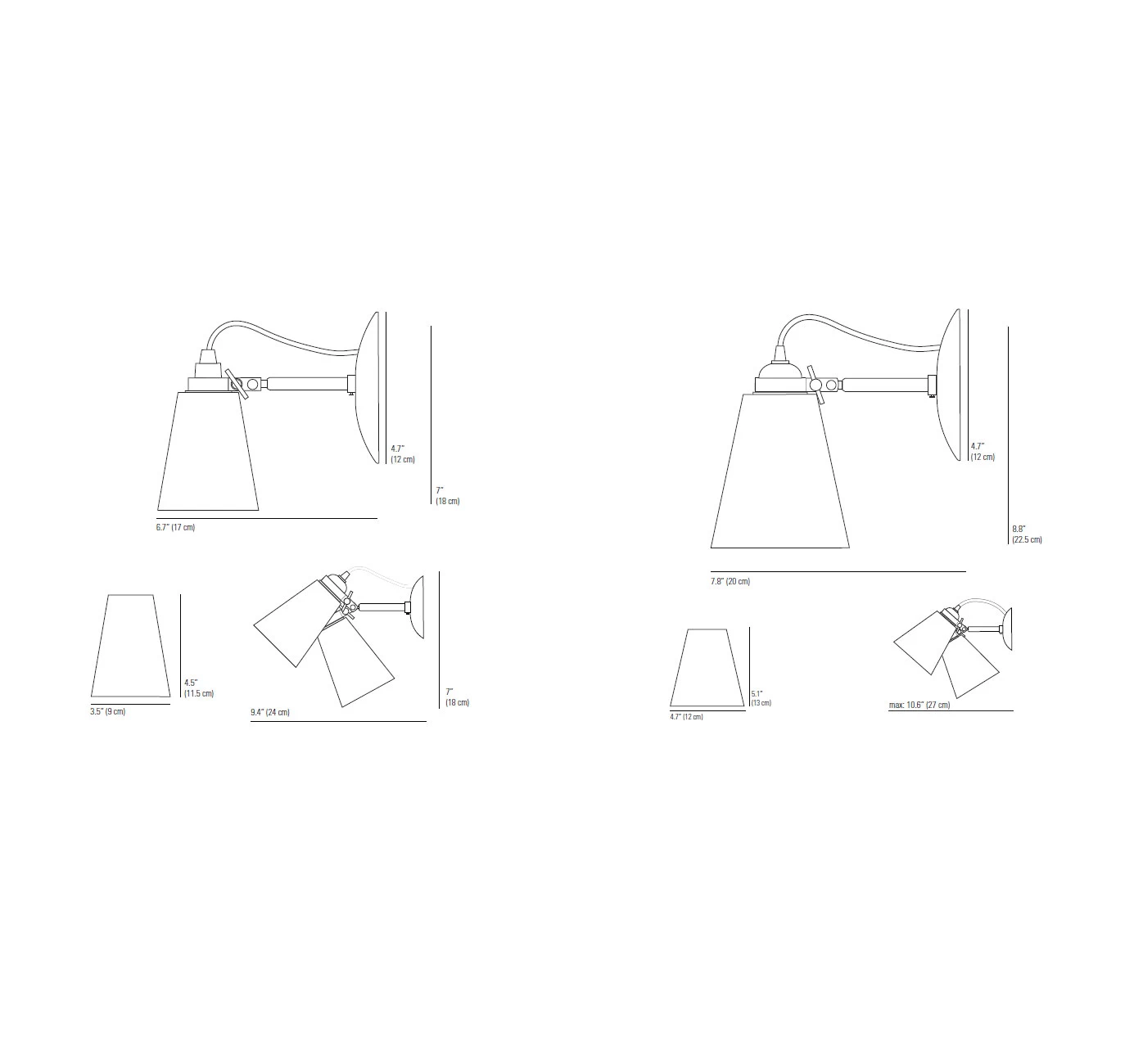 The Hector Pleat Wall Sconce is a British design classic in Natural White bone china pleated shade. Head can adjust to direct light where you need it. Available in two sizes. Made in the UK. UL listed.
