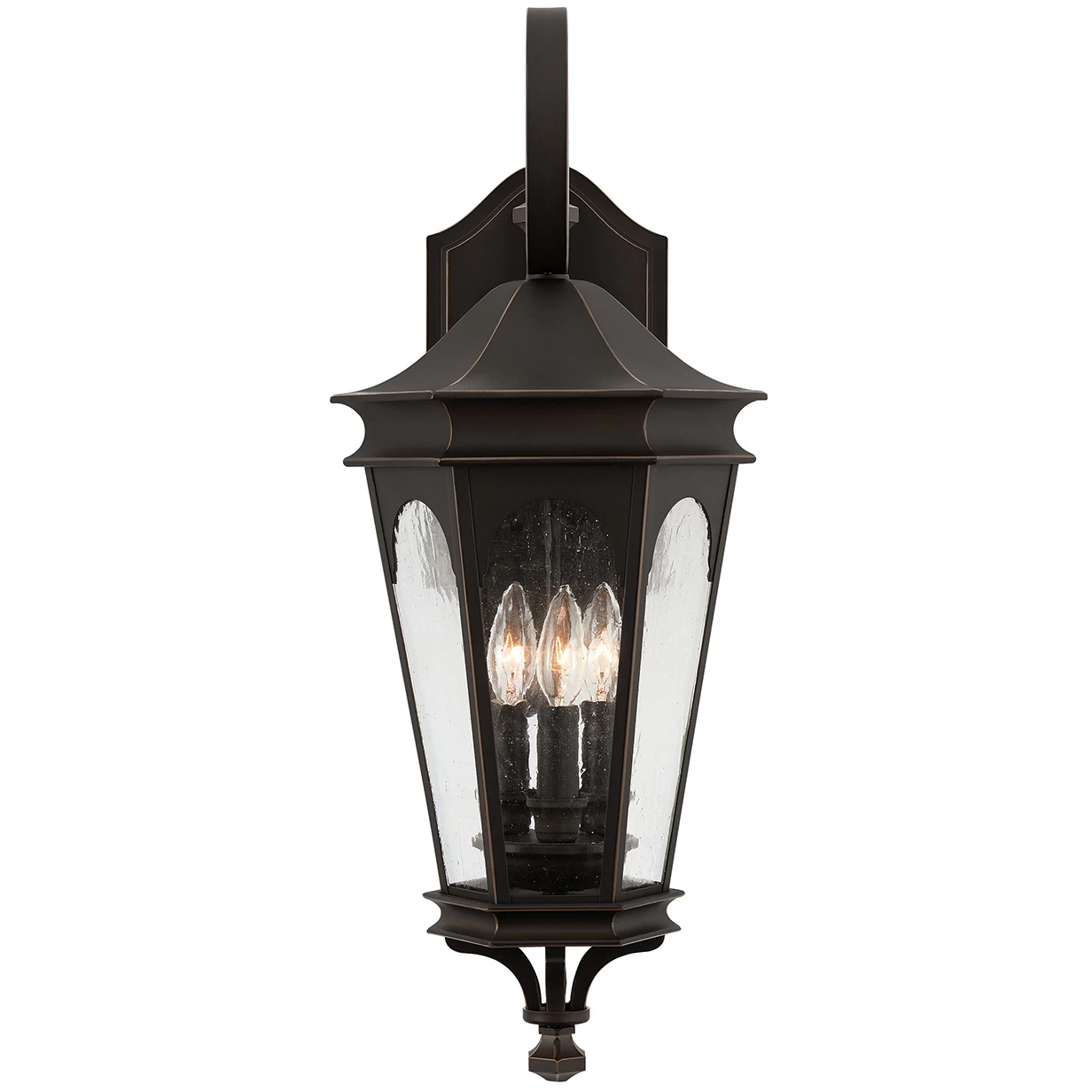 The Inman Park Outdoor Wall Sconce brings a traditionally classic look to a variety of exterior spaces. Antique Glass panels are surrounded by a frame in Oiled Bronze. Available in two sizes. Wet location rated. UL listed.
