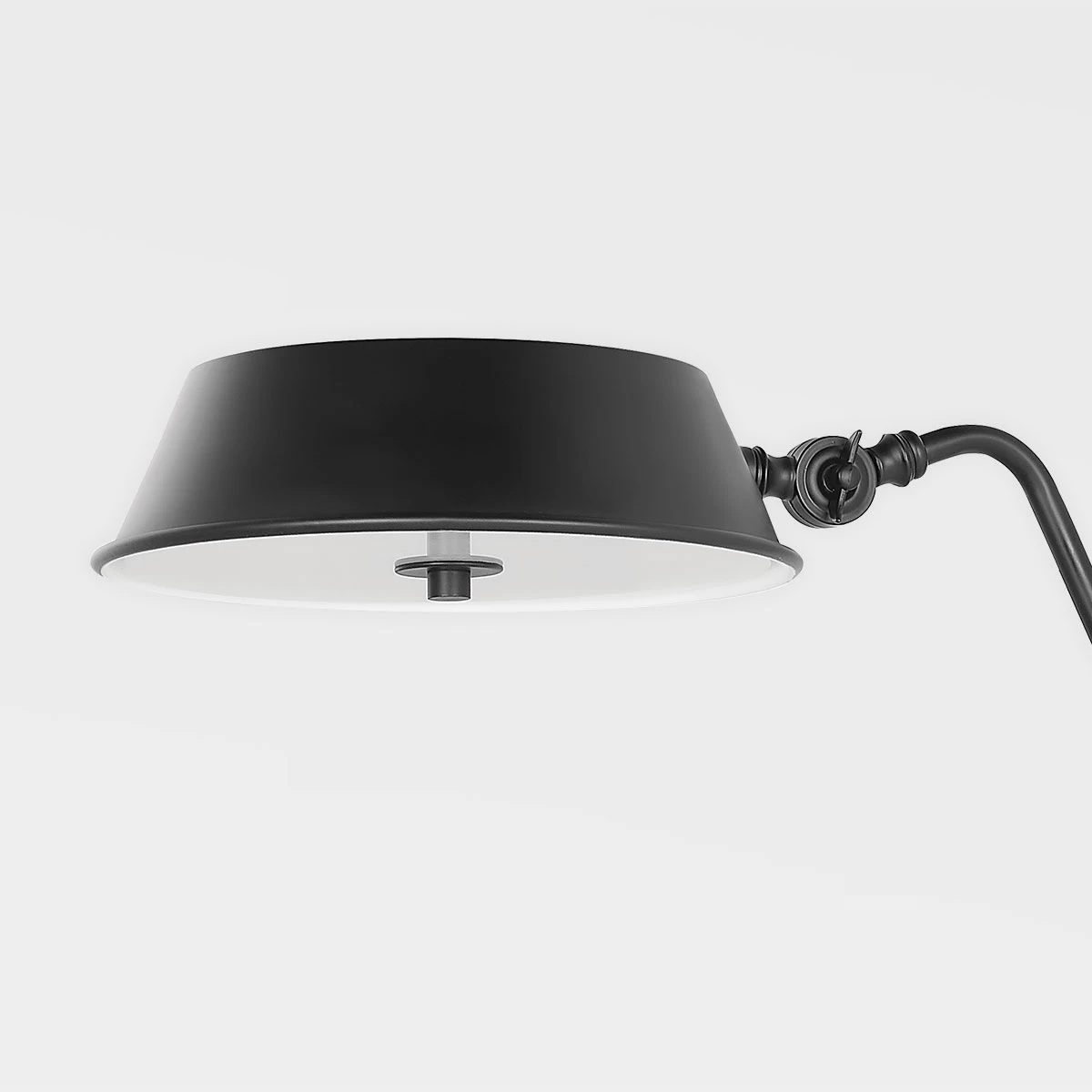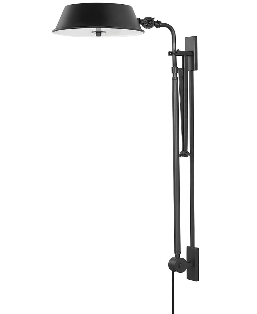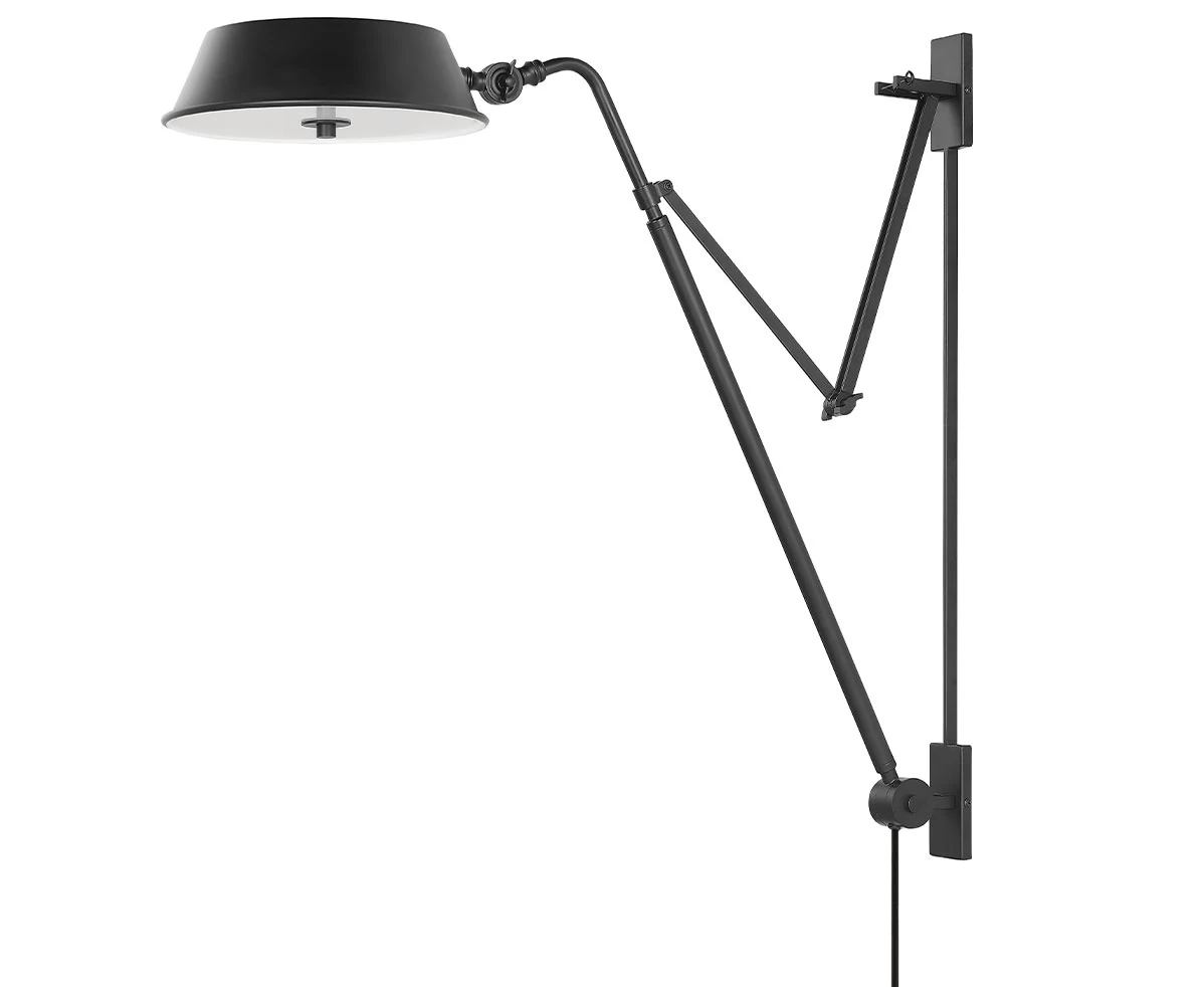 The Justin Wall Sconce is mechanically chic, fun, functional and flexible. The telescoping arm extends out and the acrylic shade is fully-adjustable allowing you to capture both the perfect height and angle to direct light where it’s needed most. The soft black finish and white glass diffuser give this plug-in sconce a fresh feel. On/off switch on cord.