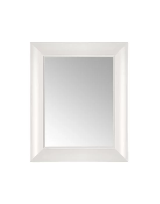 Francois Ghost Wall Mirror features colored polycarbonate with a cross section in the shape of a bird’s wing in Heavy White, Heavy Black, Transparent Red, or Crystal. Can be hung horizontally or vertically. Designed for transparency or colored transparency, they borrow from the colors of Murano glass to create a striking effect of depth and richness. Available in small and large sizes. ADA compliant. Small: 25.59 inch width x 31 inch height x 2.4 inch depth. Large: 34.64 inch width x 43.7 inch height x 3.34 inch depth.
