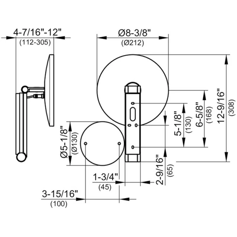 The ilook Move Cosmetic Mirror is an illuminated, 5-stage adjustable (tunable) light color from 2700 kelvin (warm white) to 6500 kelvin (daylight), glass control panel, in-wall cable layout, on pivoted arm adjustable in three dimensions, one-sided mirror, magnification factor x 5. Glass control panel with capacitive touch sensor and LED display. Connection via hard wire installation, concealed power cable 12 V in-wall adapter, input 110 V, standby consumption: 0.5 watt. Available in a variety of finishes to match any decor.