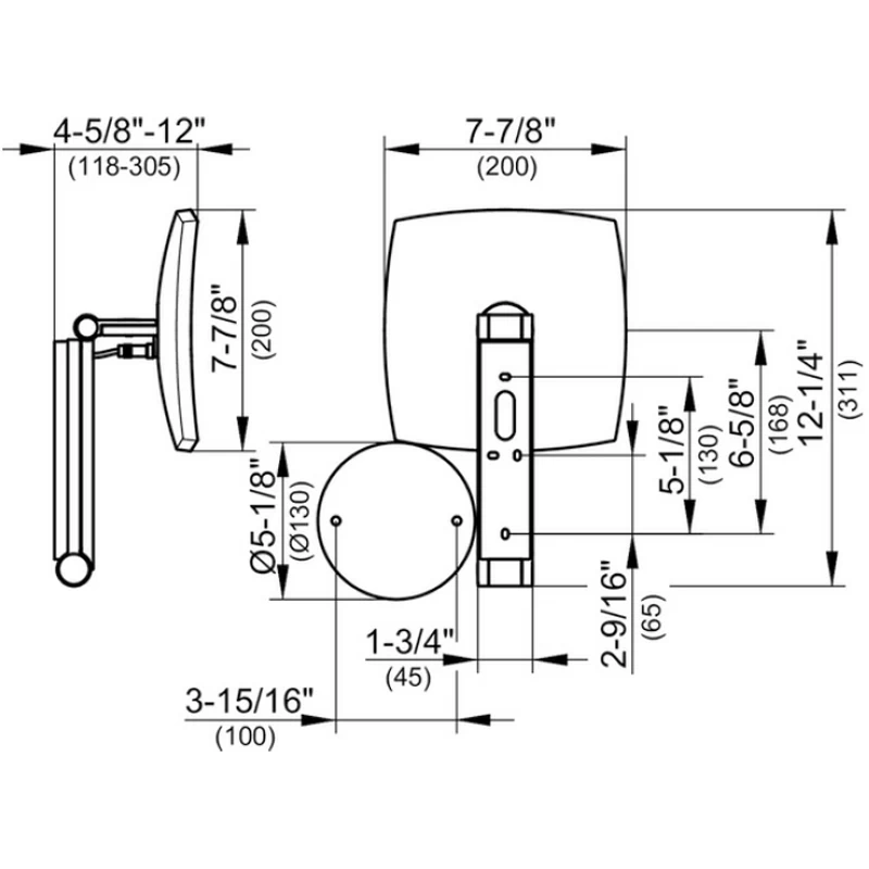 The ilook Move Cosmetic Mirror is an illuminated, 5-stage adjustable (tunable) light color from 2700 kelvin (warm white) to 6500 kelvin (daylight), glass control panel, in-wall cable layout, on pivoted arm adjustable in three dimensions, one-sided mirror, magnification factor x 5. Glass control panel with capacitive touch sensor and LED display. Connection via hard wire installation, concealed power cable 12 V in-wall adapter, input 110 V, standby consumption: 0.5 watt. Available in variety of finishes to match any decor.