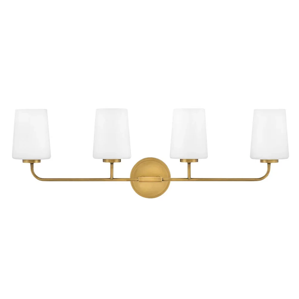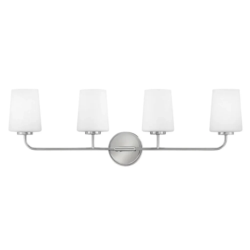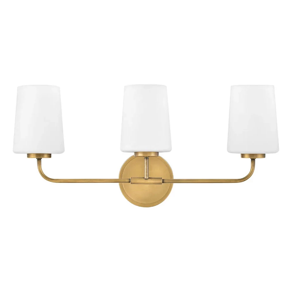 The Kline Bathroom Vanity Light features etched Opal glass shades with sleek arms in classic finishes. Can be mounted either up or down.