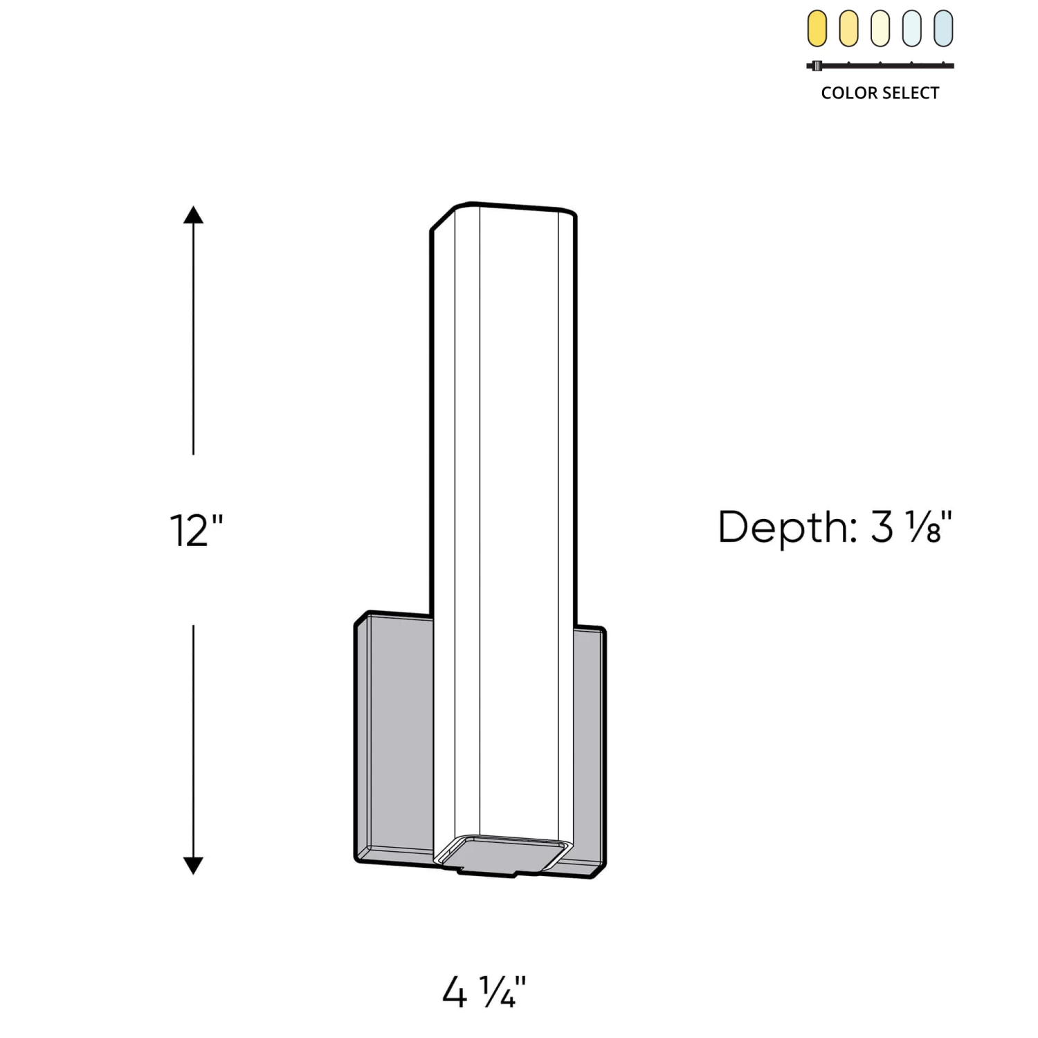 The LEDVAN 001 Wall Sconce features a Chrome or Satin Nickel finish and a square frosted glass diffuser. Switch-selectable color temperature: 2700K/3000K/3500K/4000K/5000K – switch in canopy. Integrated dimmable direct-AC LED technology. ETL listed. ADA compliant. Suitable for damp locations.