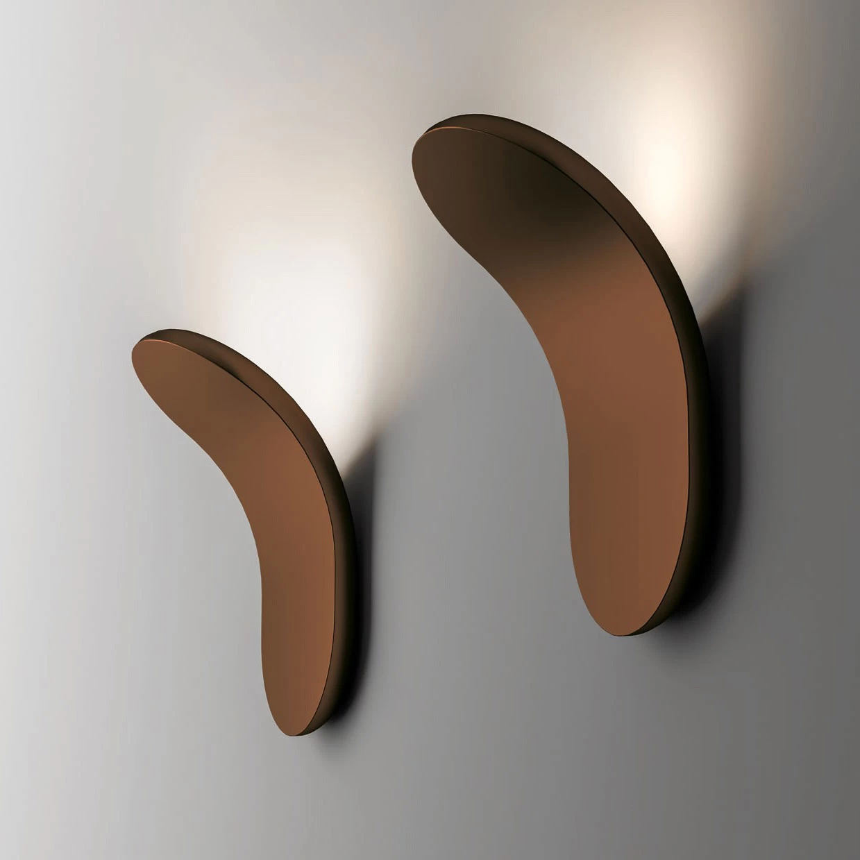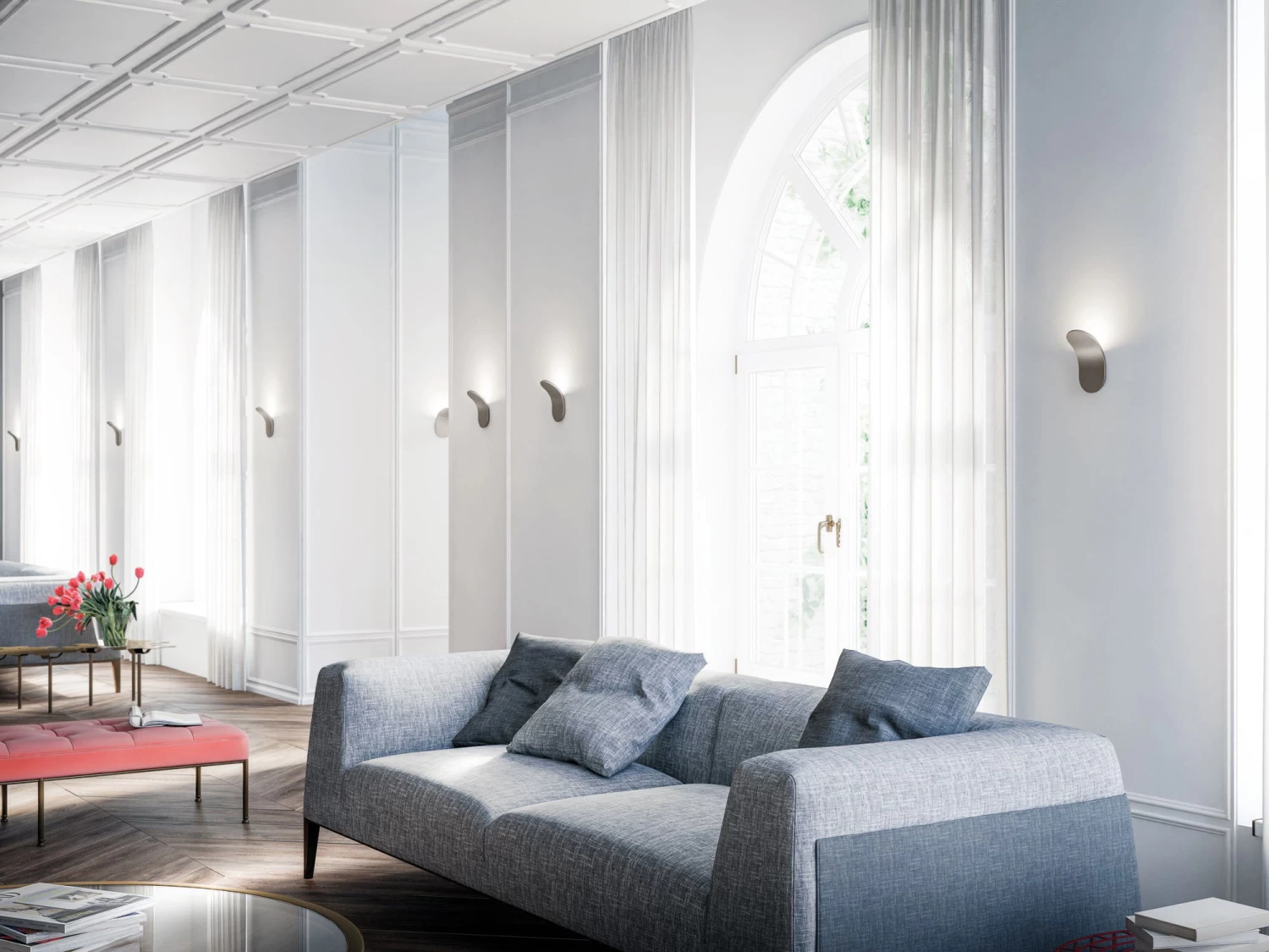 The Lik Wall Light offers a sleek, modern design featuring a curving aluminum shade with light emitting upward, for a soft overall look. Available finished in Matte Nickel, Matte Bronze, or Wrinkled White. ETL listed. ADA compliant.