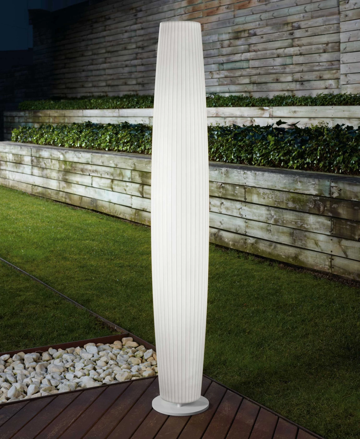 The Maxi Outdoor Plug-in Floor Lamp features a sealed, nonporous polyethylene White shade with White finish. Secure floor base allows for fastening to the floor by removing the rubber stoppers on base. Electrical cables have propylene coating. IP66 rated for wet locations. CE and ETL listed.