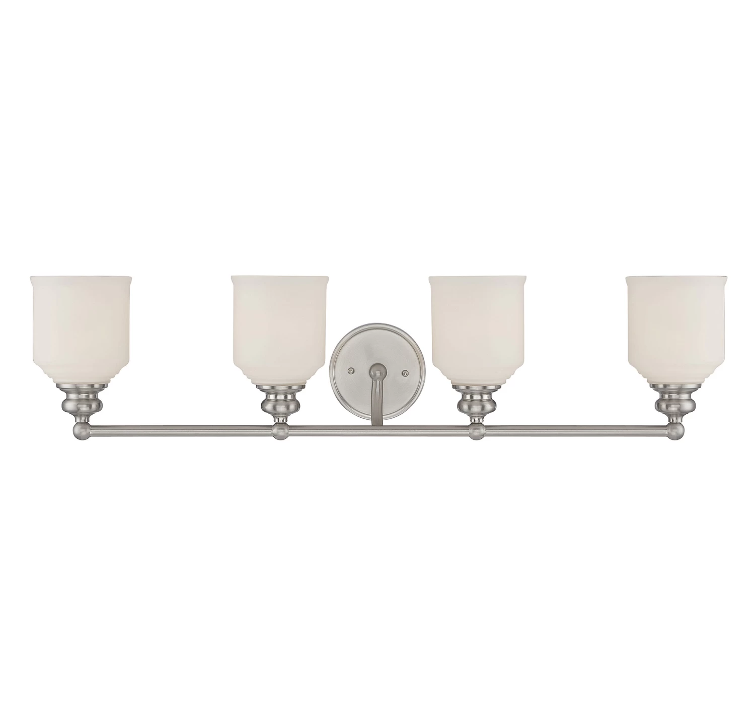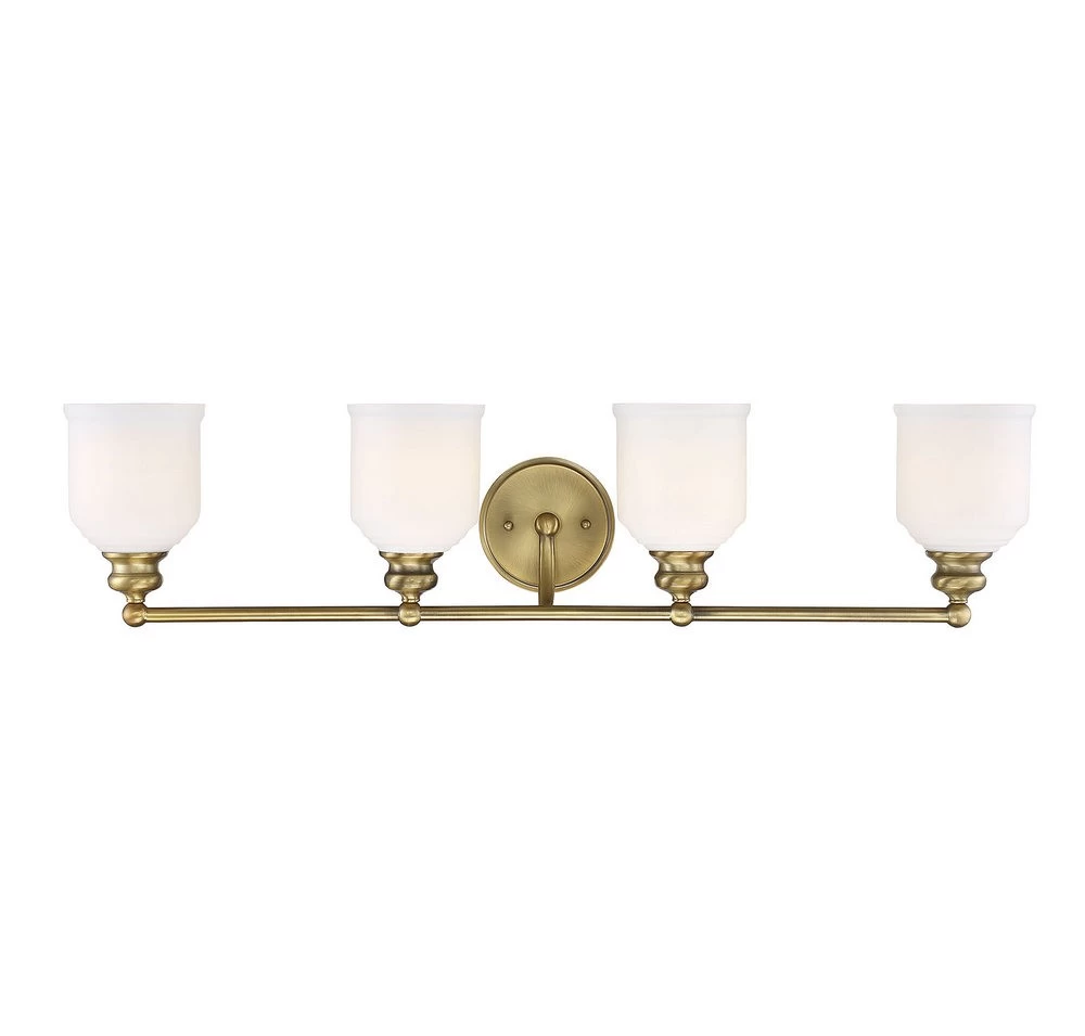 Melrose Bathroom Vanity Light stylishly updates the classic Americana design for today’s lifestyles. Features White Opal glass and a Warm Brass, Satin Nickel, English Bronze, or Polished Chrome finish in 2, 3, and 4 light options. May be mounted up or down. Damp location rated. UL listed.