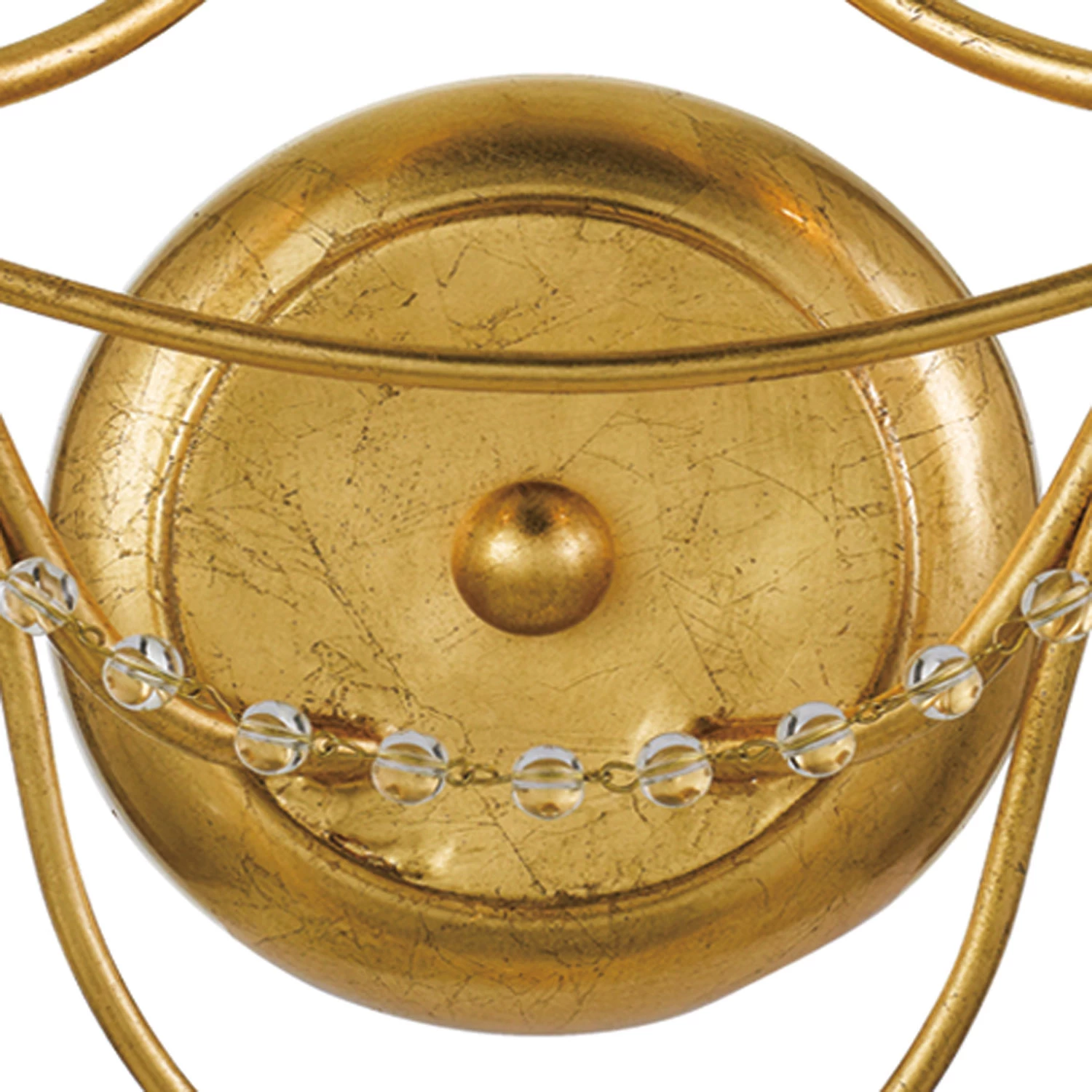The Metro Droplet Wall Sconce features a hand painted wrought iron frame. Clear Crystal droplets accent the Antique Silver or Antique Gold finish. Backplate: 5 inch diameter. UL listed.