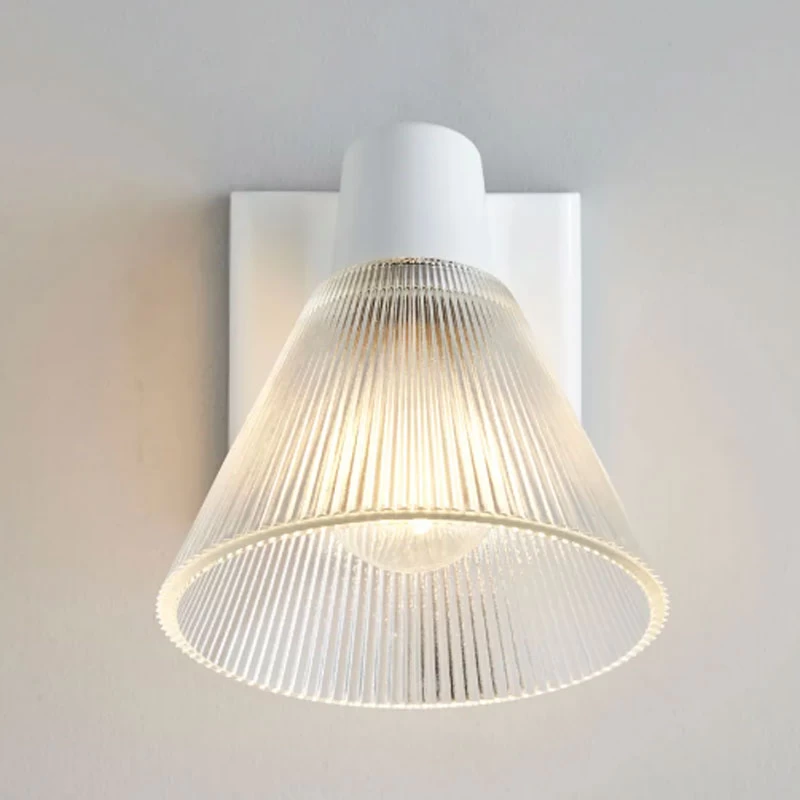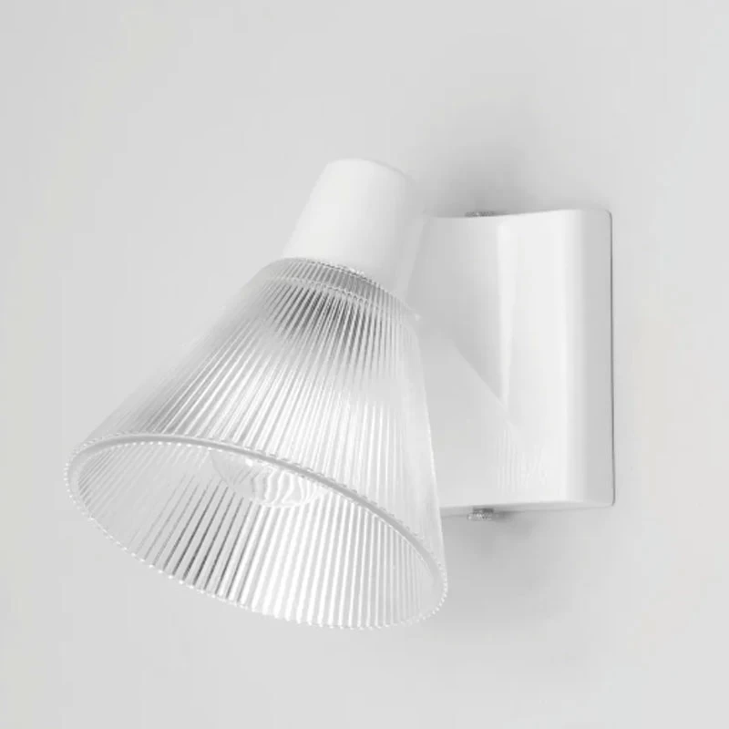 The Minster 2 Wall Sconce is utilitarian in design, that will blend into a variety of spaces in your home. The conical ribbed Clear Prismatic glass complements the hand molded Natural White Bone China base. Made in the UK. UL listed.