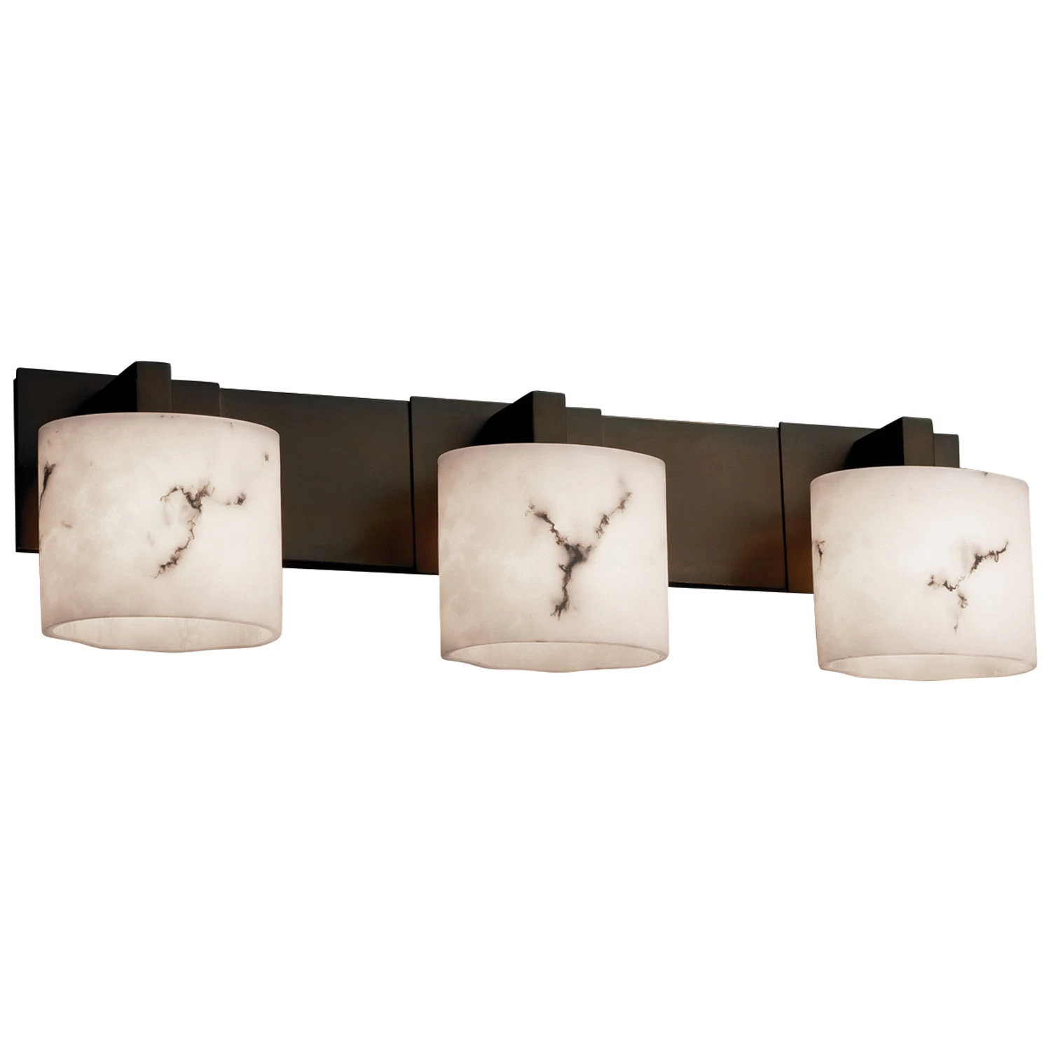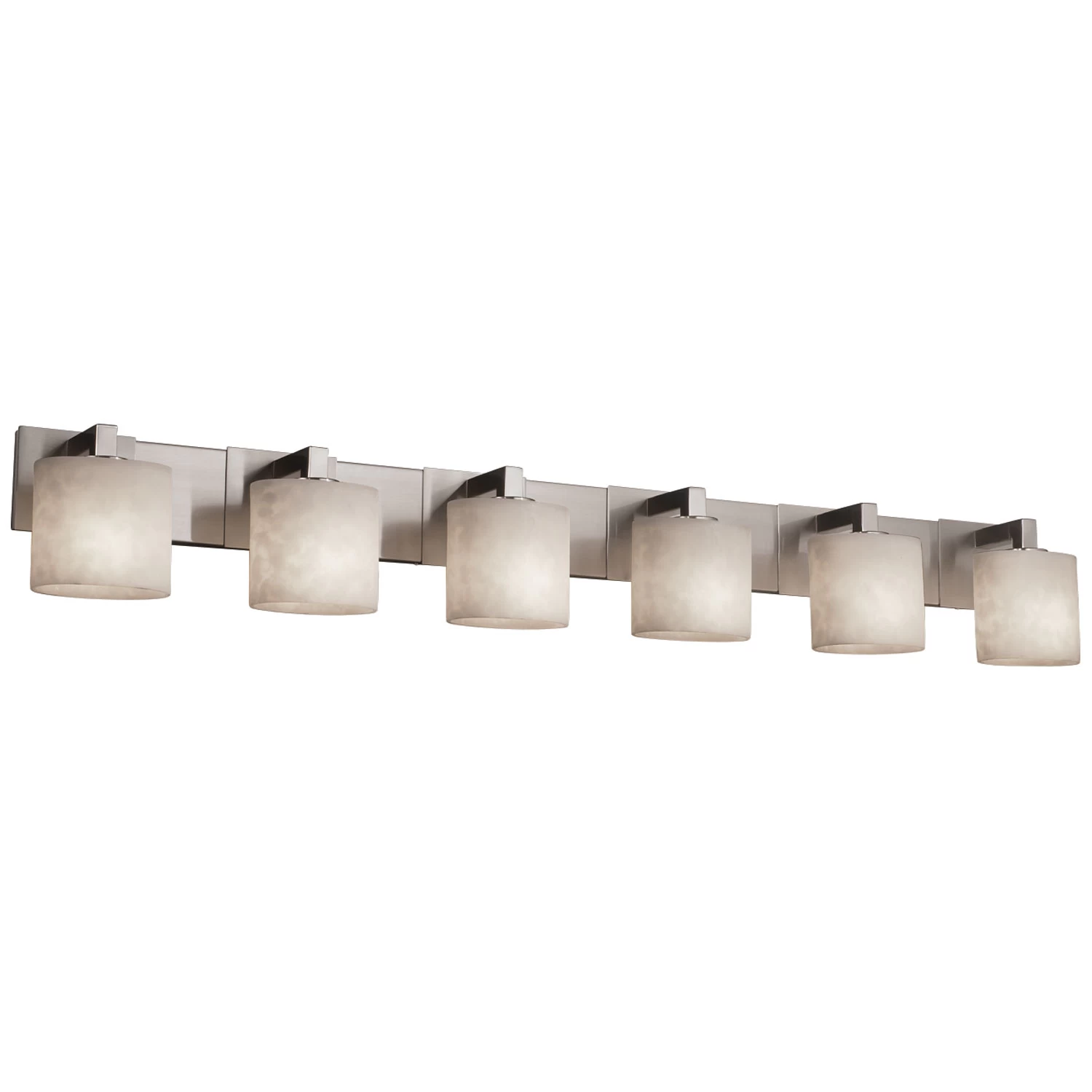 Modular Oval Bath Bar is available in an Antique Brass, Brushed Nickel, Dark Bronze, Matte Black or Polished Chrome finish with Alabaster Rocks, Clouds, Faux Alabaster, Pleats Porcelain or Waves Porcelain Oval glass. Available as a two, three, four or six light option. 60 watt, 120 volt B13 type Medium base Incandescent lamps are required but not included. Two Light: 16 inch width x 7.75 inch height x 5 inch depth. Three Light: 28 inch width x 7.75 inch height x 5 inch depth. Four Light: 35.258 inch width x 7.75 inch height x 5.25 inch depth. Six Light: 56.5 inch width x 7.75 inch height x 6.5 inch depth. Can be mounted as an up or down light. UL Listed for Damp Locations.