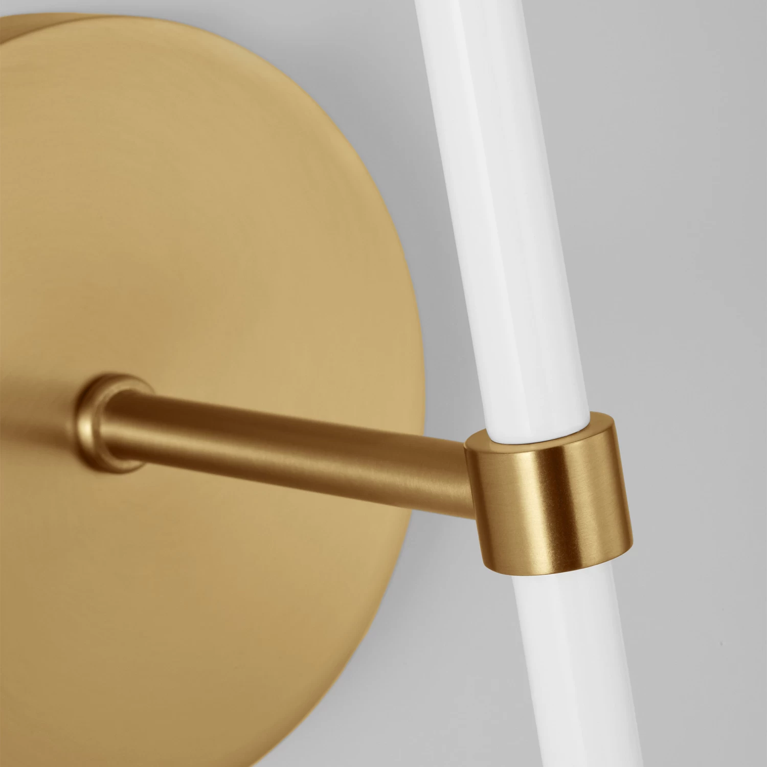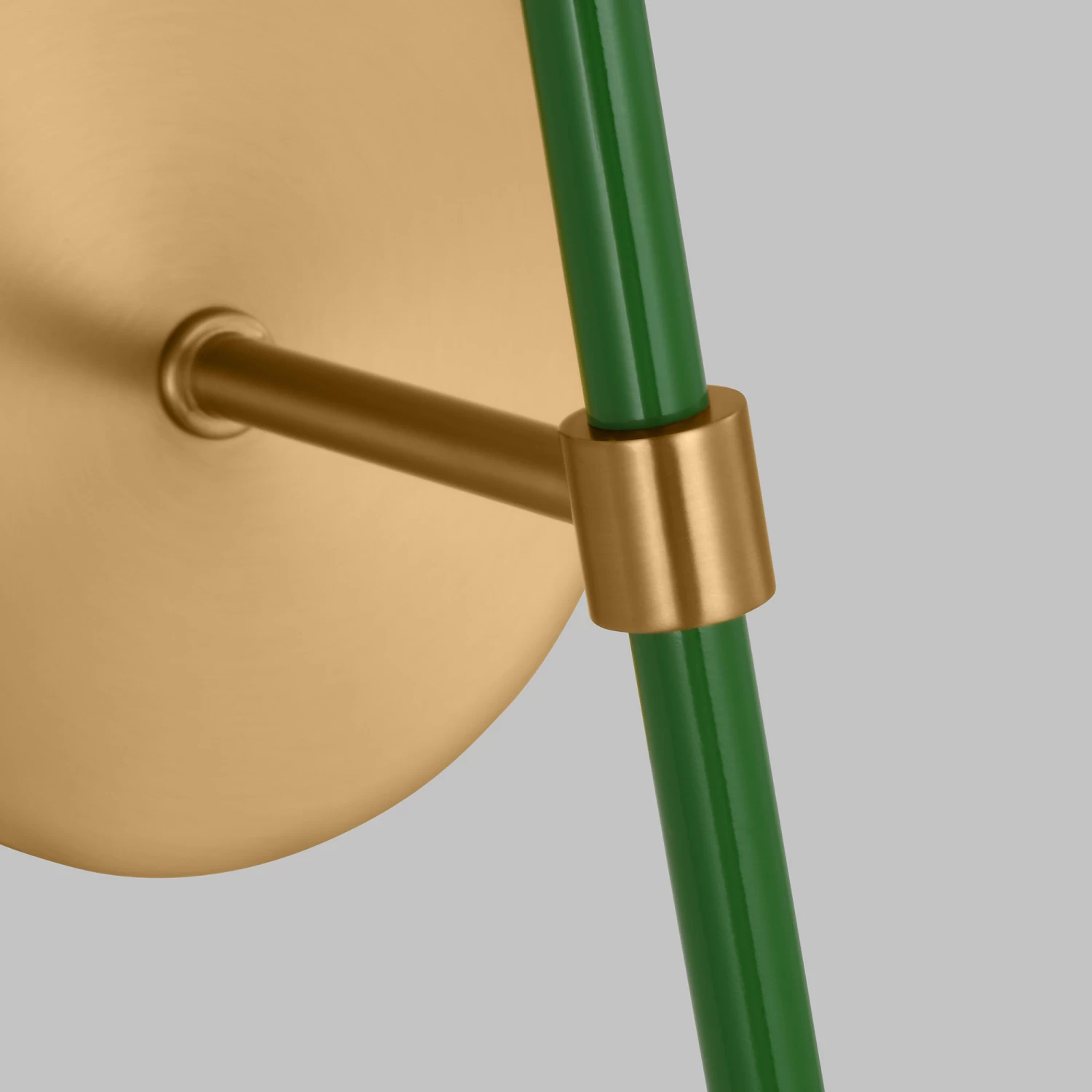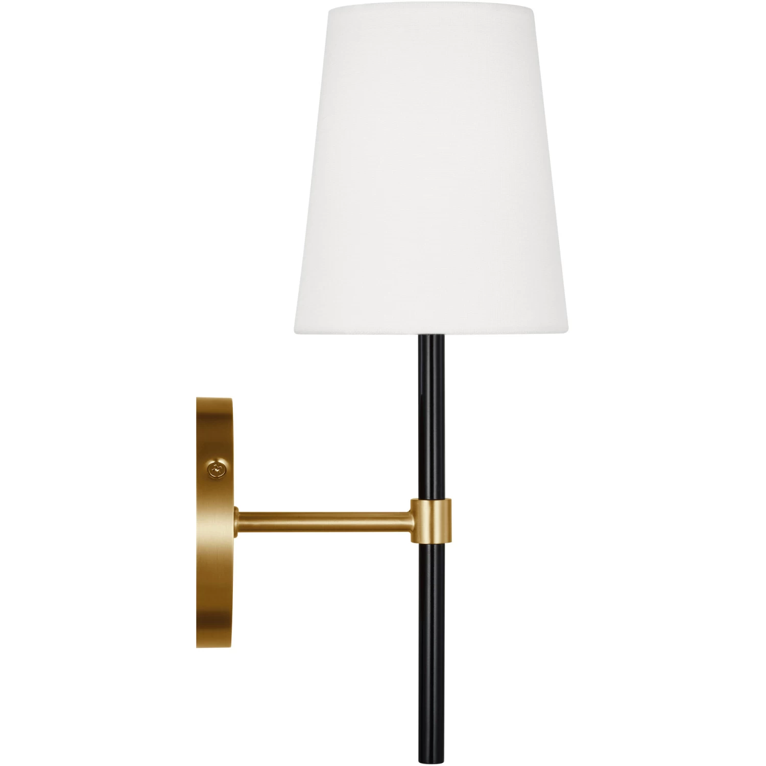 Drawing influence from Kate Spade enameled accessories and the colorful atomic era design of the 1950s, the Monroe Wall Sconce exhibits clean lines with a painted stem and contrasting metal backplate. A white linen shade complements the frame and softens the light. With its chic finishes in neutral tones or fun pops of color, the Monroe delivers a refined modern aesthetic for your bedroom, living room, or hallway.