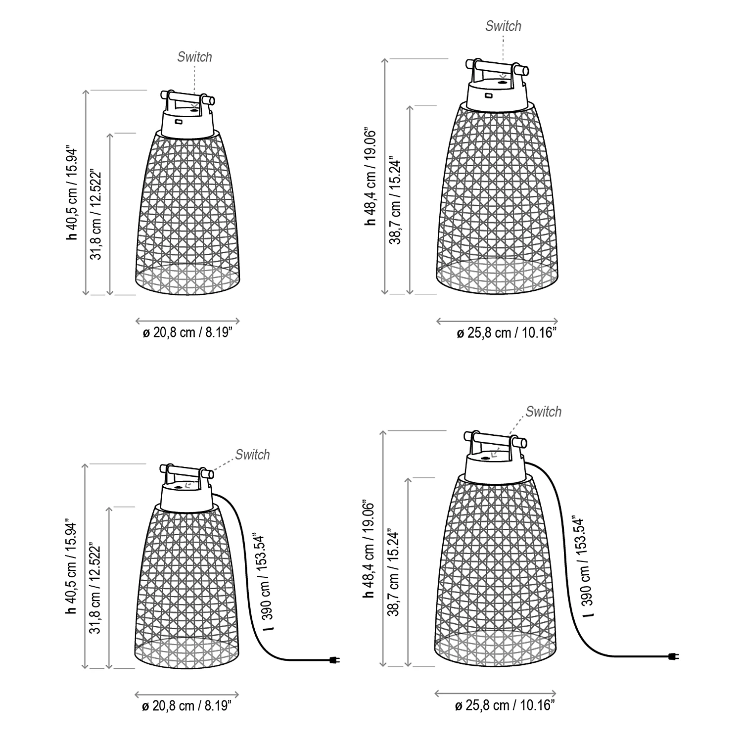 Create a relaxing, well-lit outdoor space wherever you go with the Nans Outdoor Portable Table Lamp. Featuring a handcrafted shade made of recyclable, non-toxic polyethylene strands woven together complemented by a teak wood handle, this light channels the nature and relaxed atmosphere of the Mediterranean coastline. A polycarbonate diffuser softens the energy-efficient LED light, and a push button on the top turns the lamp on/off and switches it to three brightness levels: 33%, 66%, 100%.