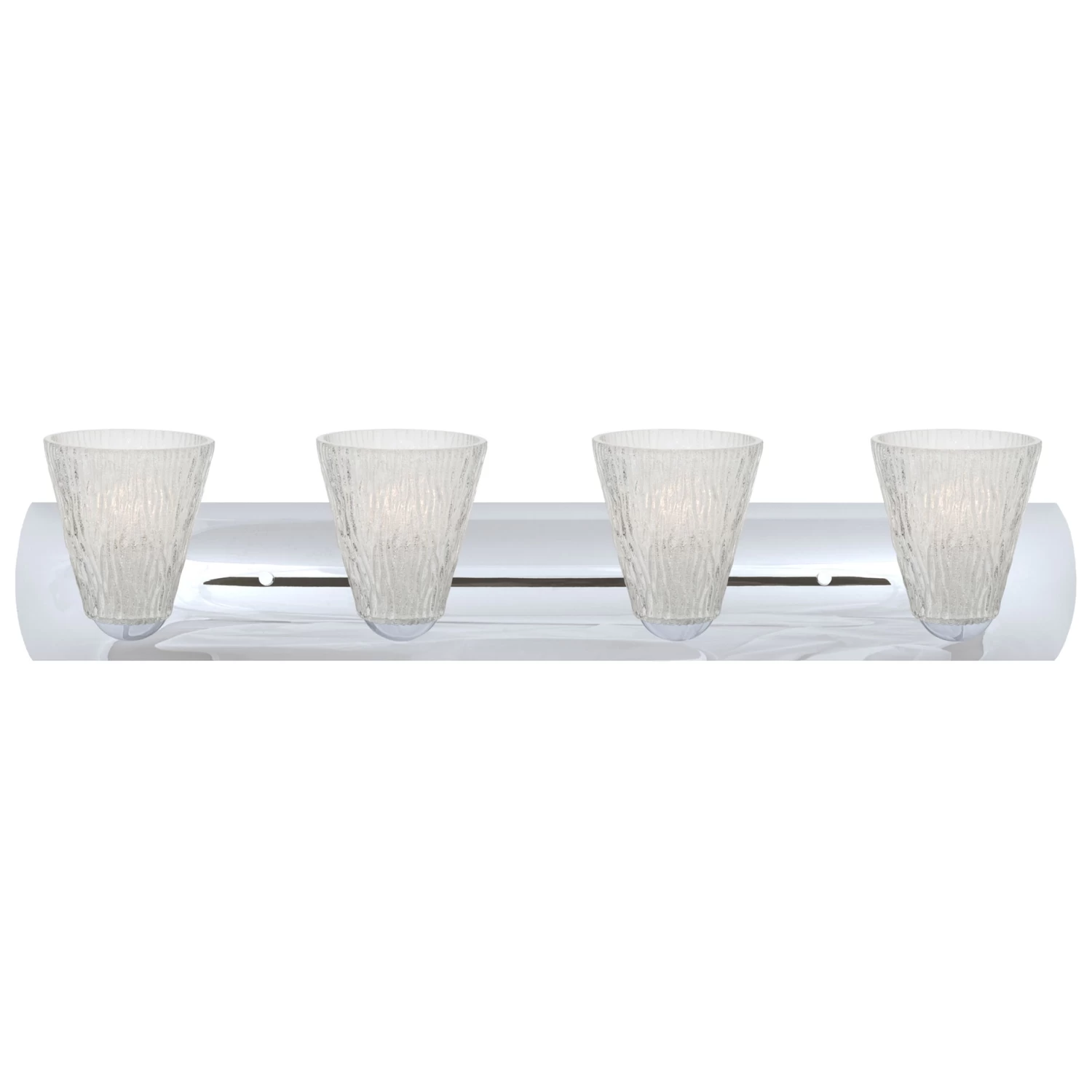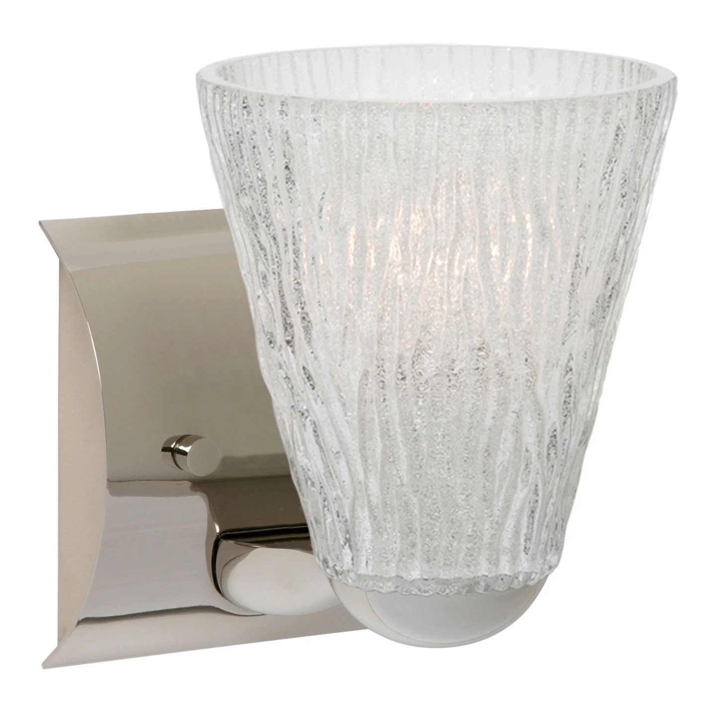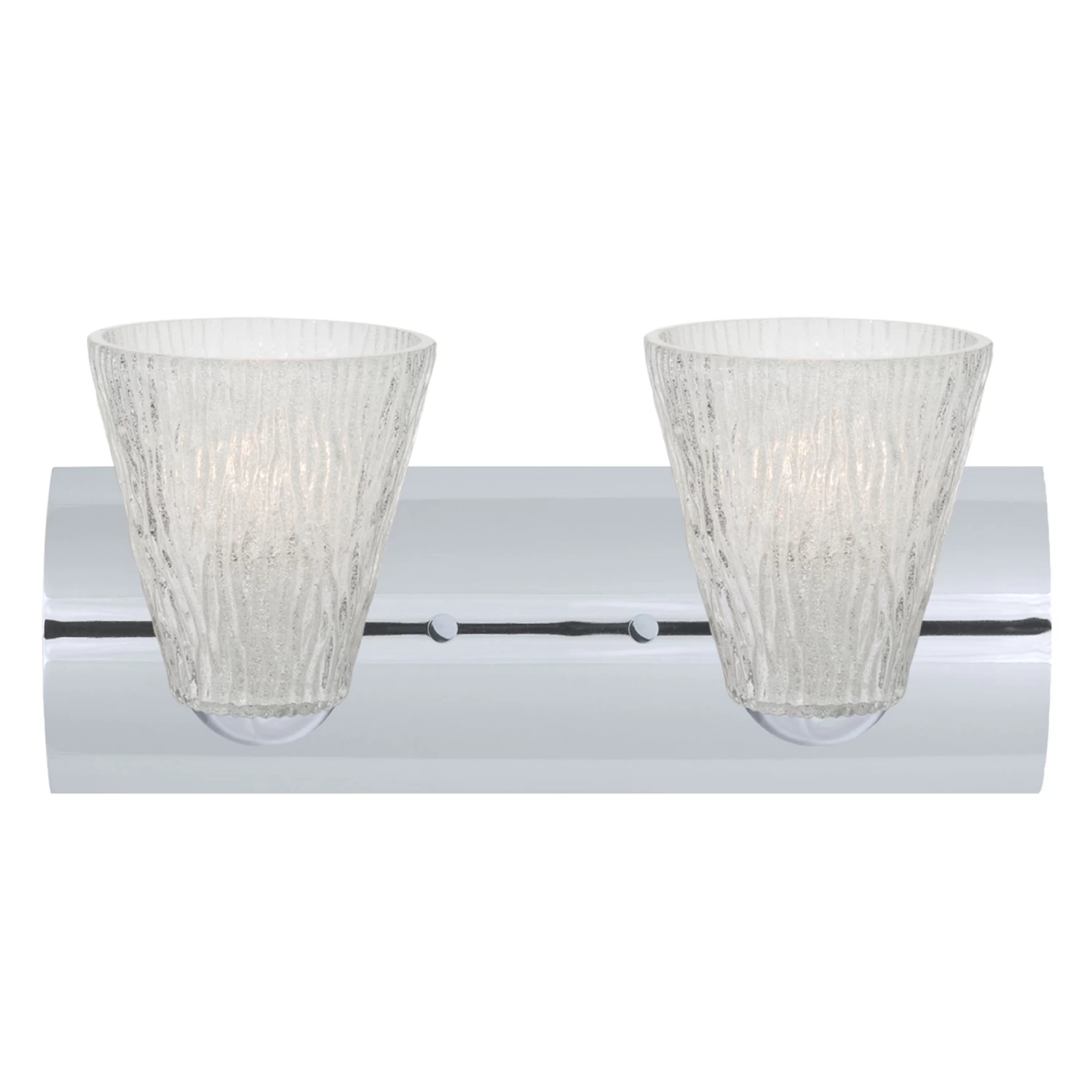 The Nico Bathroom Vanity Light features a Chrome finish with Clear Stone or or Glitter Stone shades. Available with one, two, three, or four lights. May be installed upward or downward. 9 watt 120 volt A19 GU24 base LED bulbs are included. 4.8/14.5/22.4/30.3 inch width x 6.9 inch height x 6.5 inch depth. UL or ETL listed for indoor damp locations.